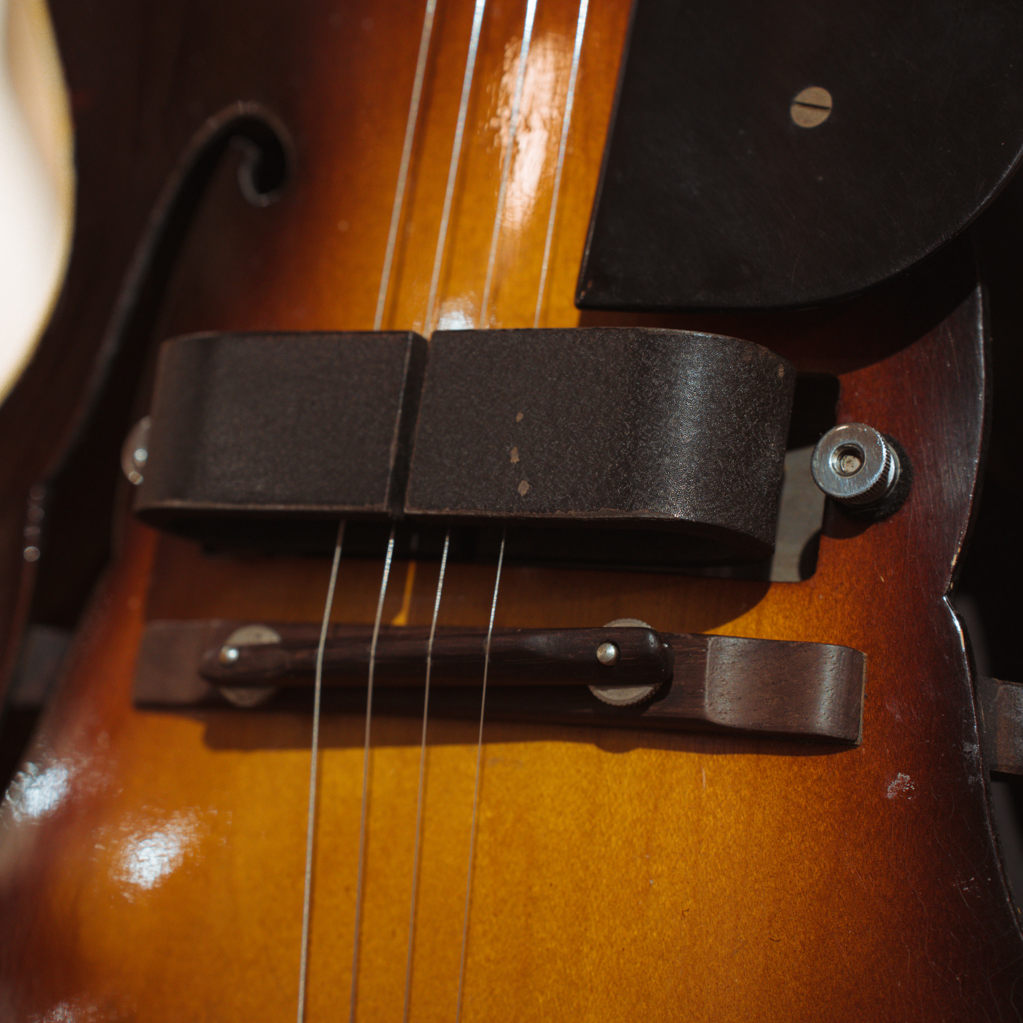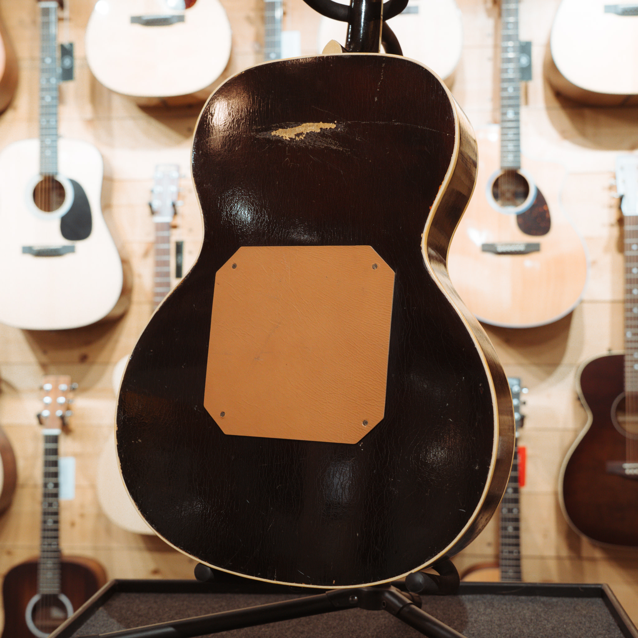 An incredibly rare 1935 Epiphone Electar Tenor Hollowbody Archtop Electric Guitar in excellent condition for its age! This is one of the first electric guitar pickups to be installed with the original horseshoe still intact and fully functional. The guitar mostly original except for new frets, neck reset, backplate hole cover, front headstock plate, and one control knob. Hardshell Case included.