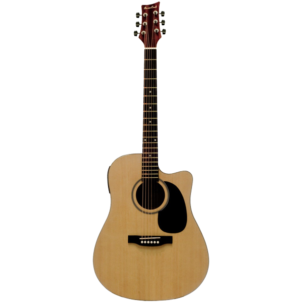 The BCTD101CE is the acoustic/electric version of BeaverCreek’s most popular guitar model, the BCTD101. This is a full sized cutaway guitar ideal for all levels and styles of play with the advantages of having built-in Shadow active electronics. The basic design of this model produces a loud, deep and powerful sound.