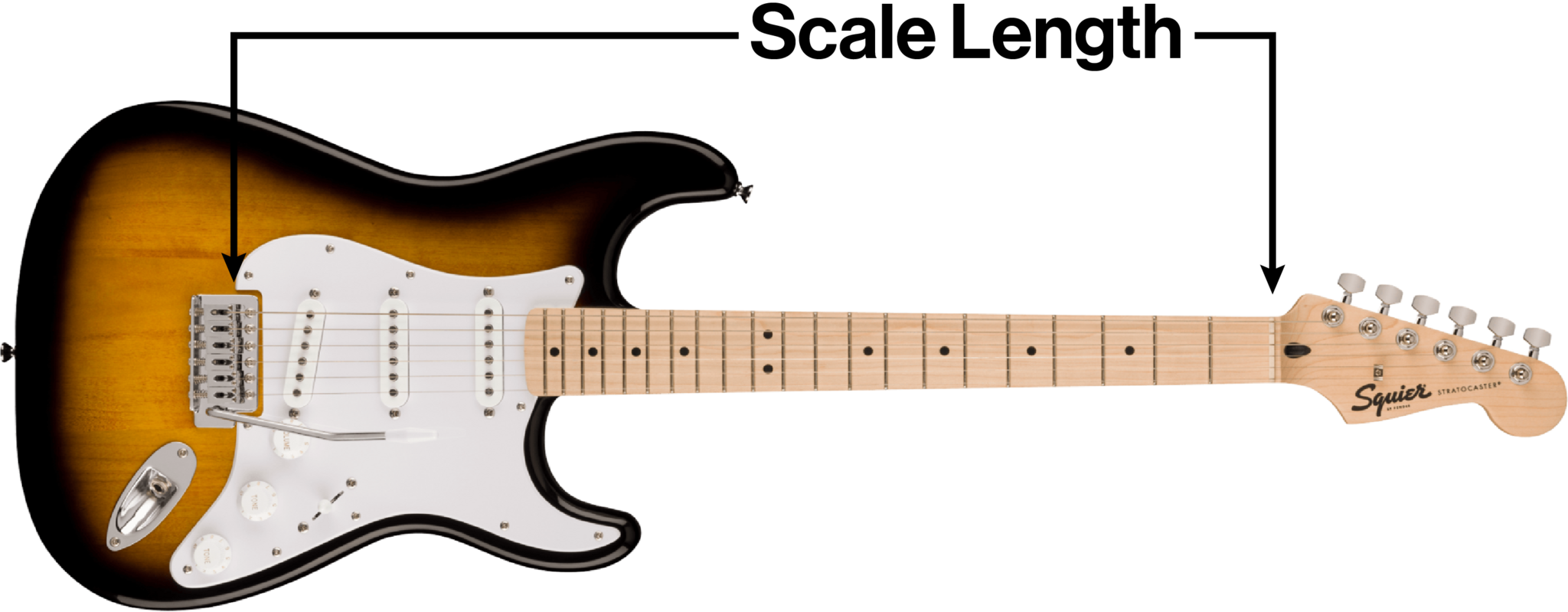 Scale length refers to the vibrating length of the strings on a guitar—specifically, the distance from the nut (where the headstock meets the fretboard) to the bridge saddle (where strings anchor at the body). This measurement is exactly double the distance from the nut to the 12th fret, which is why the 12th fret always sits precisely at the midpoint of the scale.