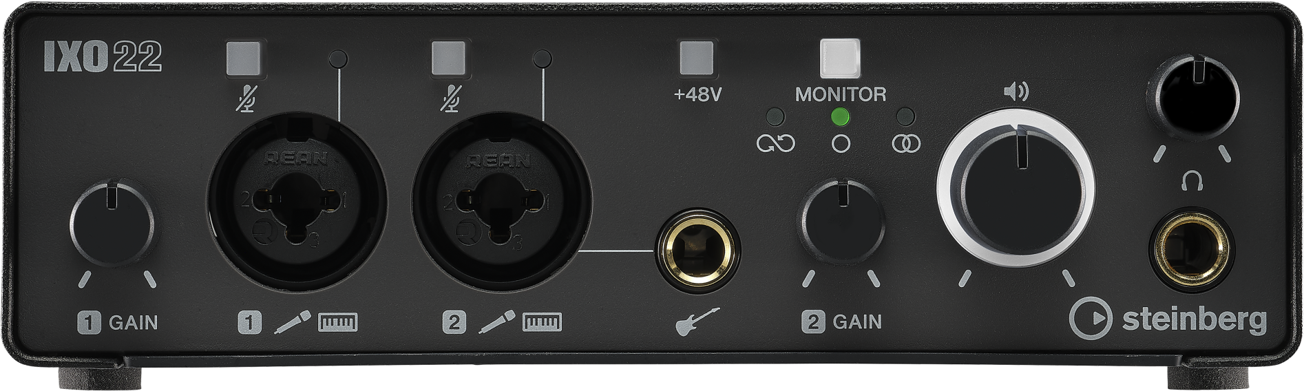 One of the most popular input/output combinations for home setups is the 2in/2out configuration. This means that the interface has two inputs (e.g. for one mic and one instrument, or two mics, etc.) and two different ways of outputting sound (e.g. analog outputs for monitors, and headphones). All of the interfaces below feature XLR & 1/4" combo connectors, meaning you can plug either an XLR or 1/4" cable into the same jack.