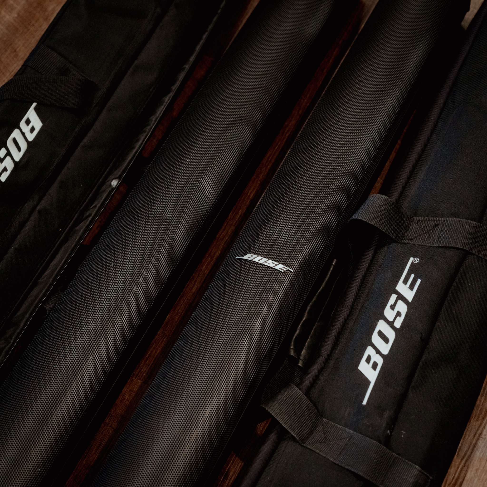 A used Bose L1 Model II Cylindrical Radiator Loudspeaker set in good working condition. There is some cosmetic dings and scuffs but the speakers tested great! Bags included.