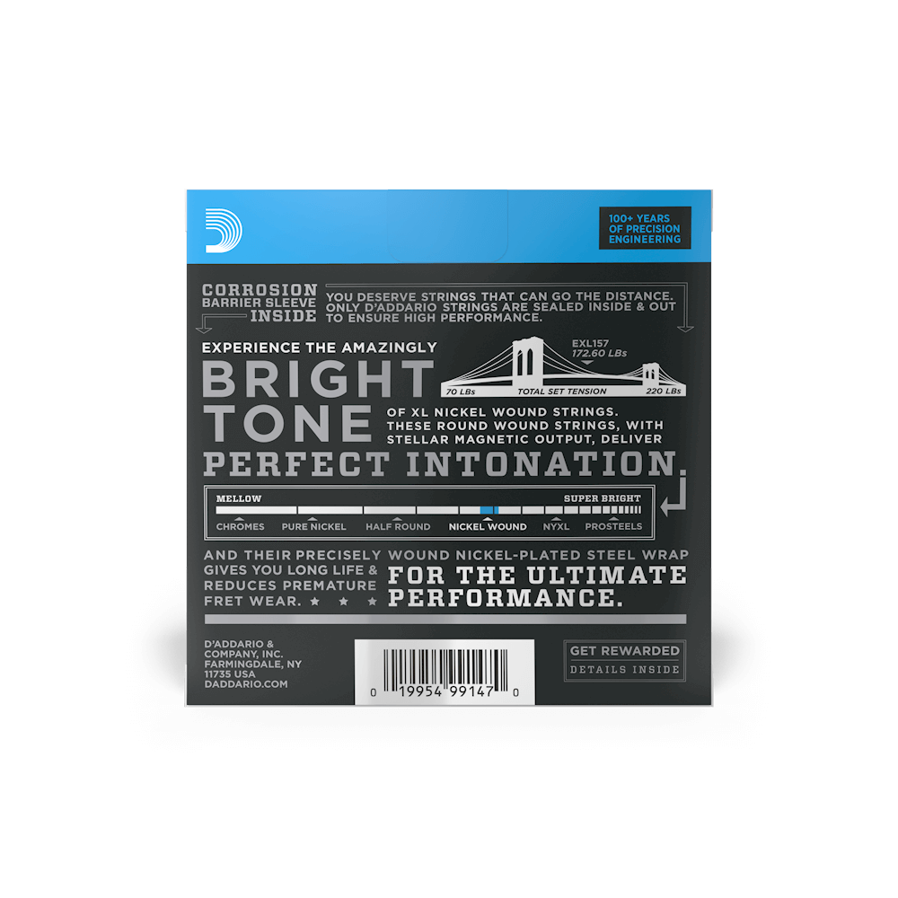 - Like all D’Addario electric guitar strings, XL Nickel are made with our proprietary Hex-Core, ensuring perfect intonation, consistent feel, and reliable durability.