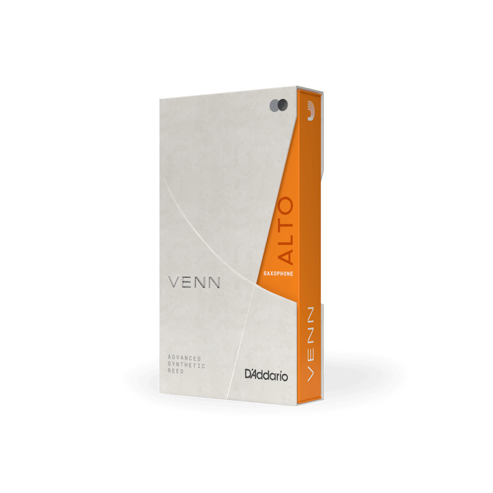D'Addario VENN: an advanced synthetic reed constructed of polymer fibers, resin, and natural cane elements. Designed to give players the benefits of synthetic reeds without compromising on the sound and playability of cane reeds.