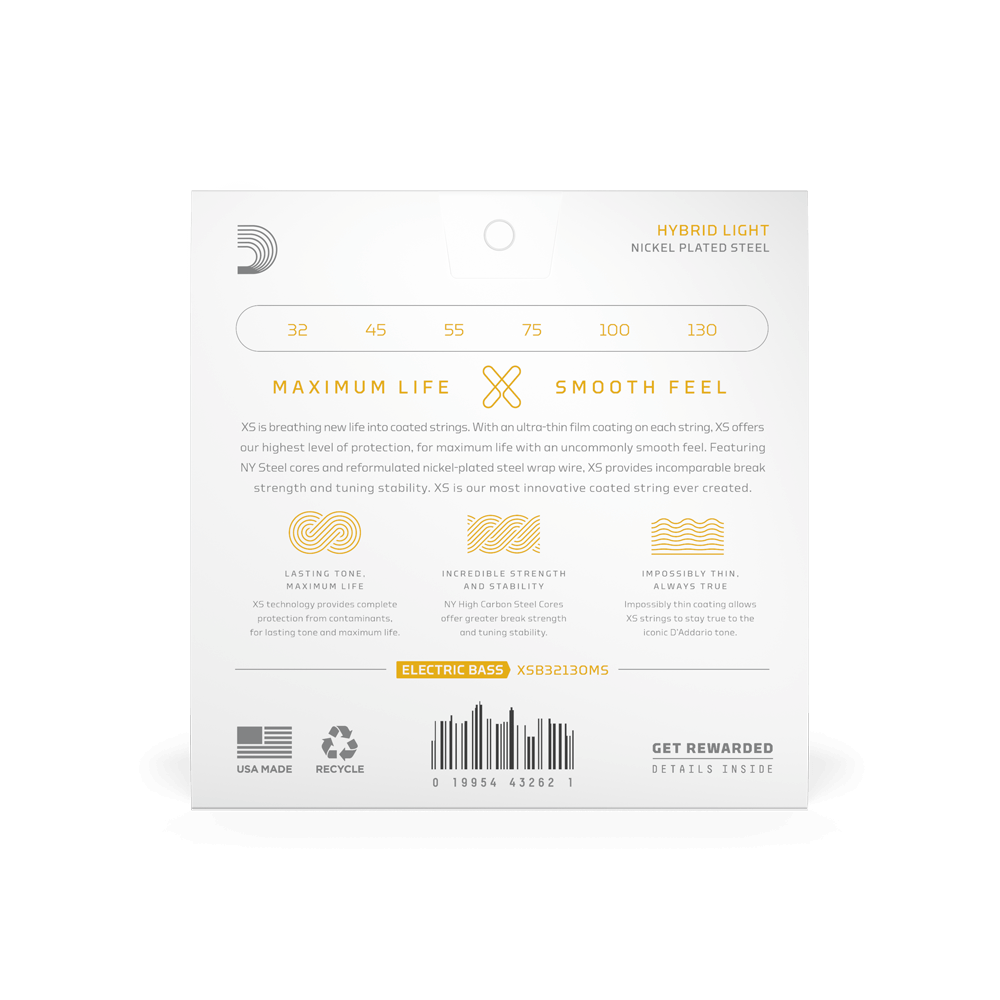 - Premium reformulated nickel-plated steel wrap wire used for XS bass strings features re-engineered core-to-wrap ratios, for a more versatile string which still maintains a familiar feel, plus accentuated harmonics.