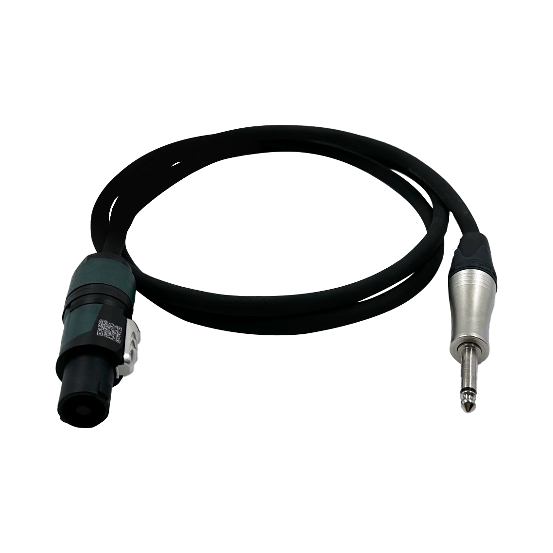 High quality speakON NL4FXX-W-S to oversized 1/4" speaker cables. Run between differently connectorized amps and speakers without needing to carry around extra adapters.