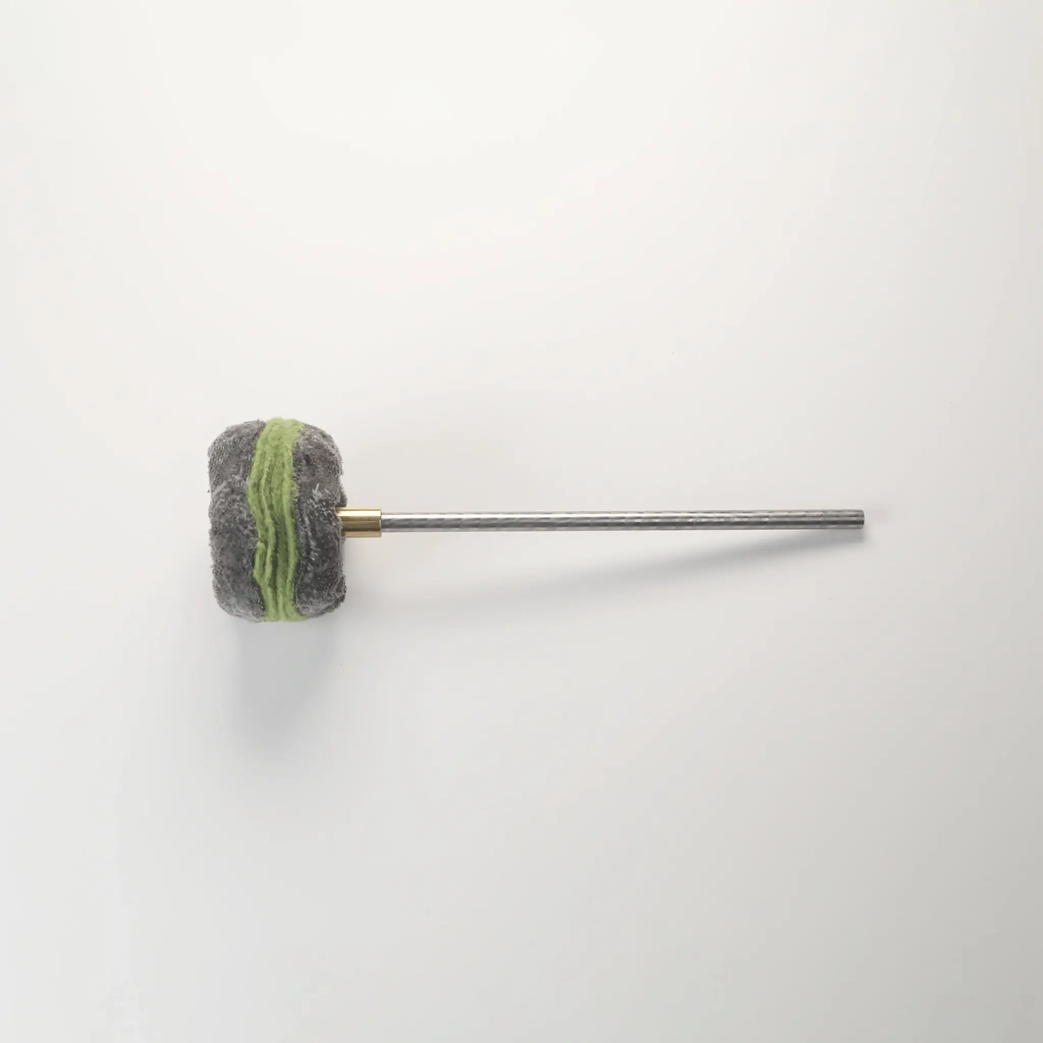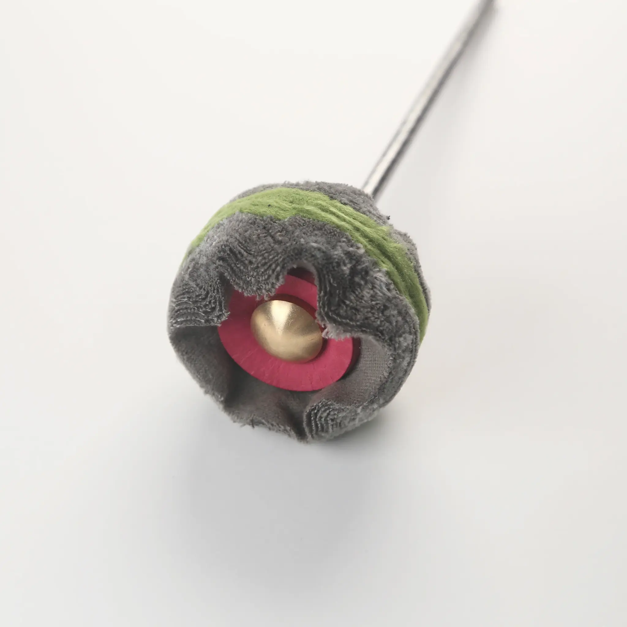 This beater is a perfect hybrid of our Soft Flannel beater and the Big Softy. 4 layers of ultra soft fleece are sandwiched between 32 layers of soft flannel. At 2 ½” in diameter, it is directly in between the 3” Big Softy and 2” Soft Flannel. It gives your bass drum a huge, boomy sound with very little attack. Less give and a little more clarity than the Big Softy, but definitely softer and boomier than the Soft Flannel.