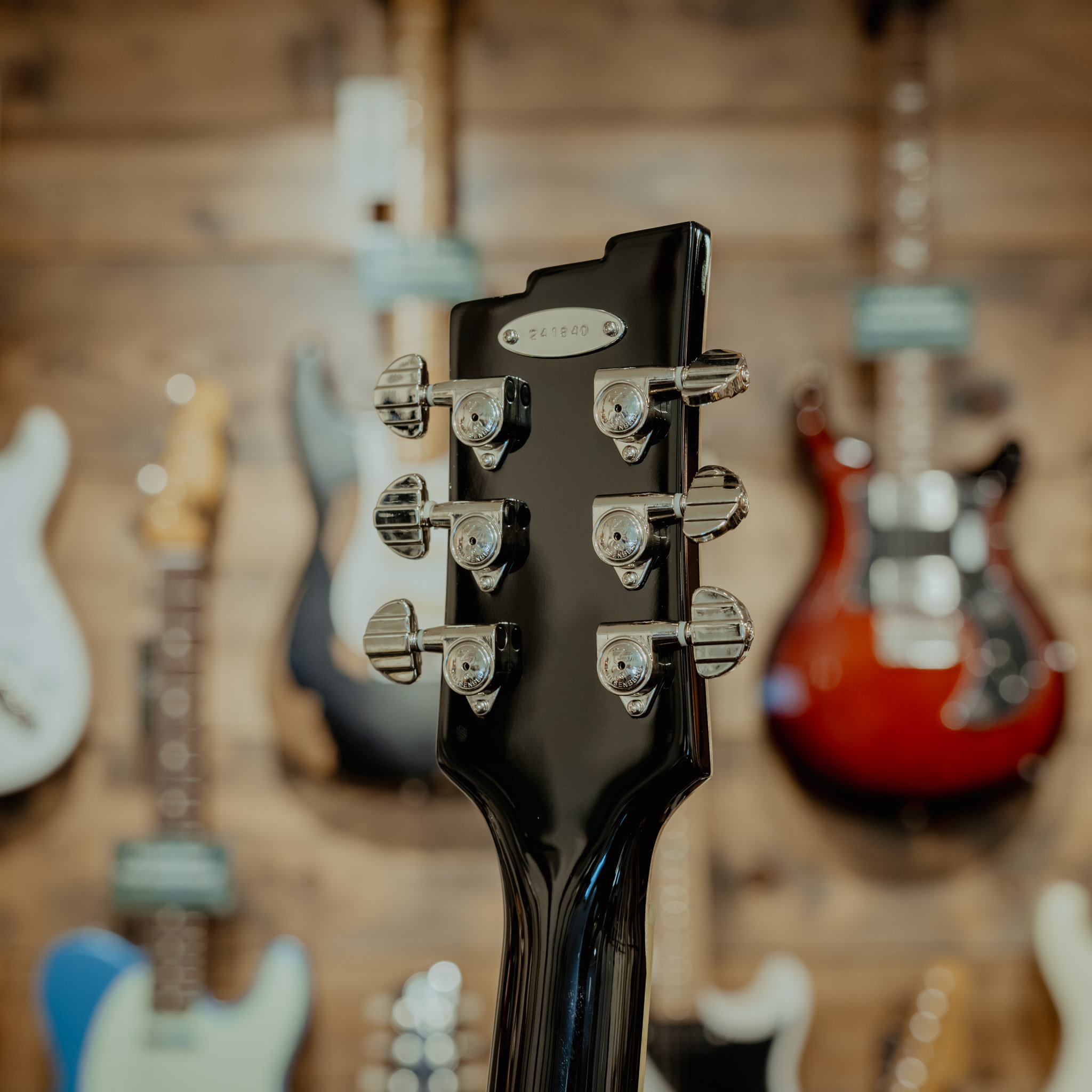 THE ELEGANT HIGH-GLOSS BLACK HEADSTOCK HOLDS OUR SUPER-SMOOTH Z-TUNERS.