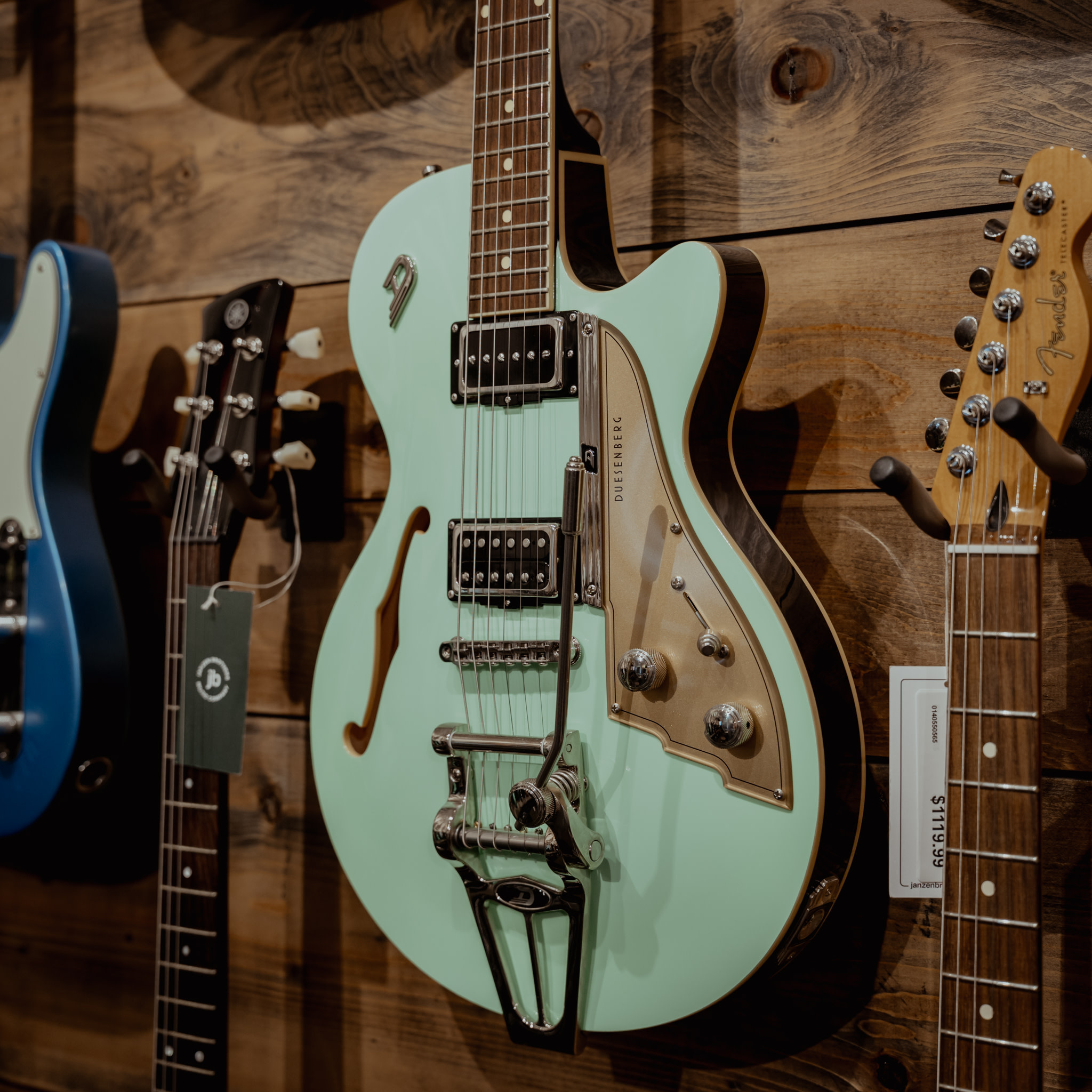 Gently used and well cared for Duesenberg Starplayer TV Semi-Hollowbody in Surf Green in excellent condition! Includes Duesenberg Case