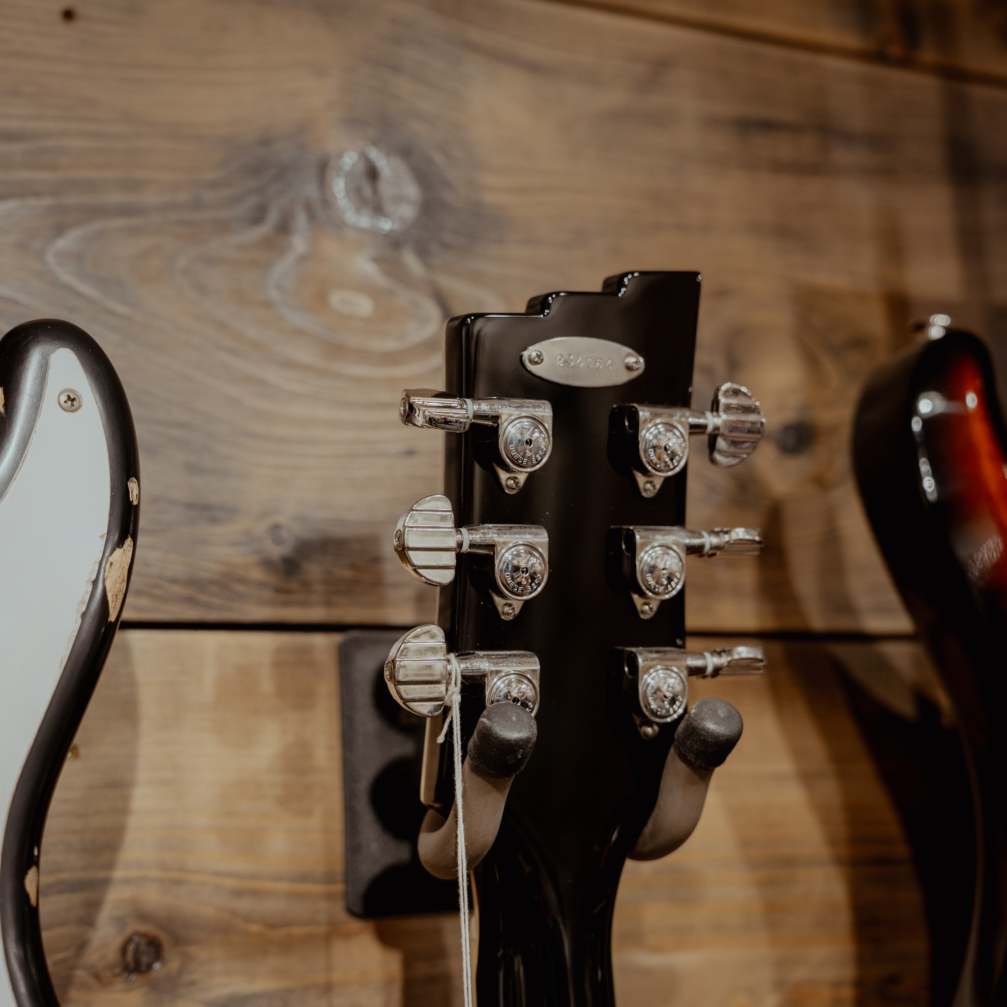 THE ELEGANT HIGH-GLOSS BLACK HEADSTOCK HOLDS OUR SUPER-SMOOTH Z-TUNERS.