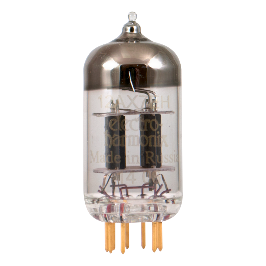 This Russian tube is full bodied and bright with a more straightforward presentation. It packs a lot of bite with its higher-than-normal gain. In overdrive, it offers a lot of crunchy fizz. High gain preamplifier tube with ultra low noise and detailed, musical tone. Unique spiral filament eliminates filament to cathode induced hum common on amplifiers that use AC on the filaments.