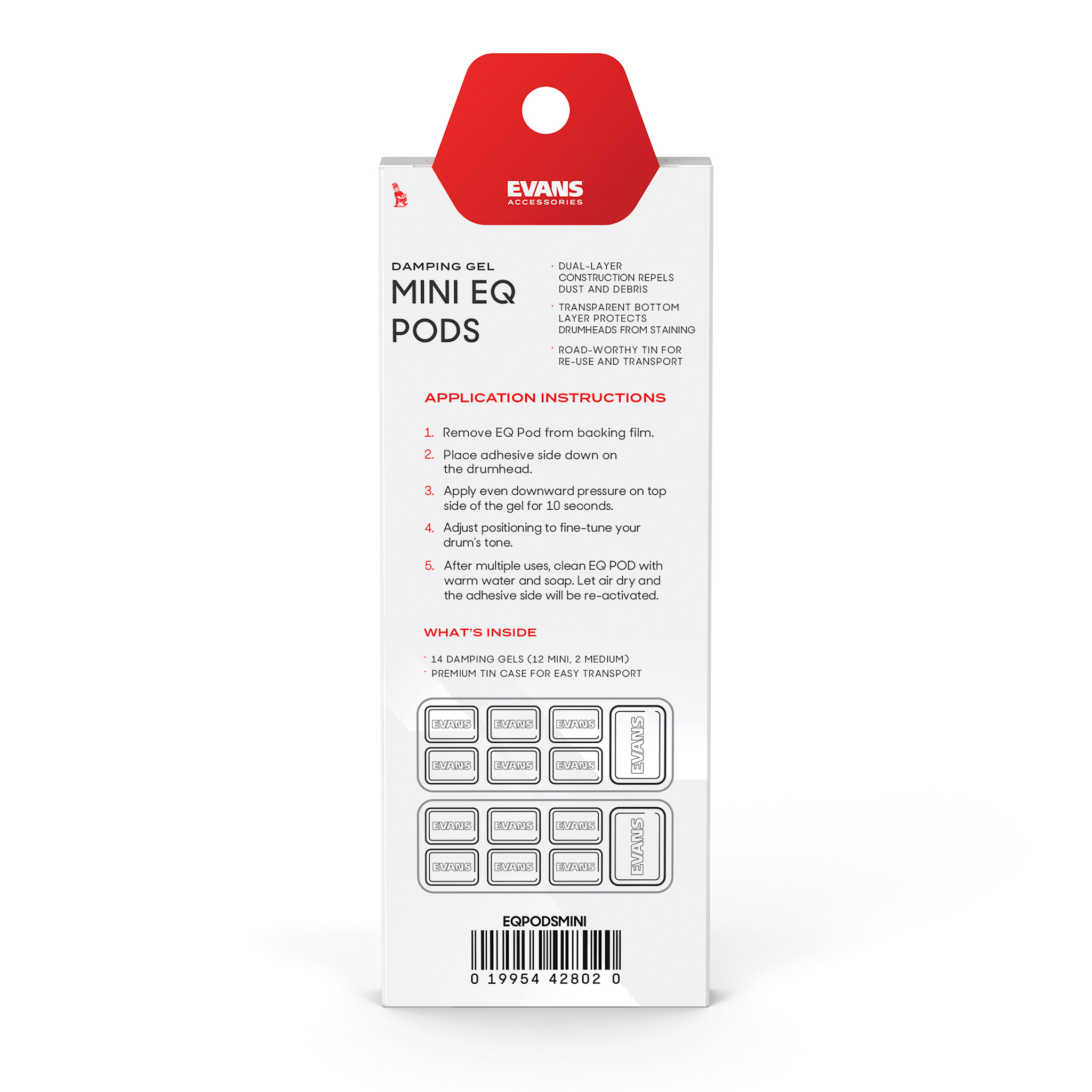 Sculpt your sound with EVANS Mini EQ Pods, the ultimate solution to overtone, tuning, and resonance control. These premium polymer gels are stain-free, hold their shape, and are offered in mini and medium sizes. Designed for experimentation, you can apply and remove without surrendering grip, shape, or effectiveness.