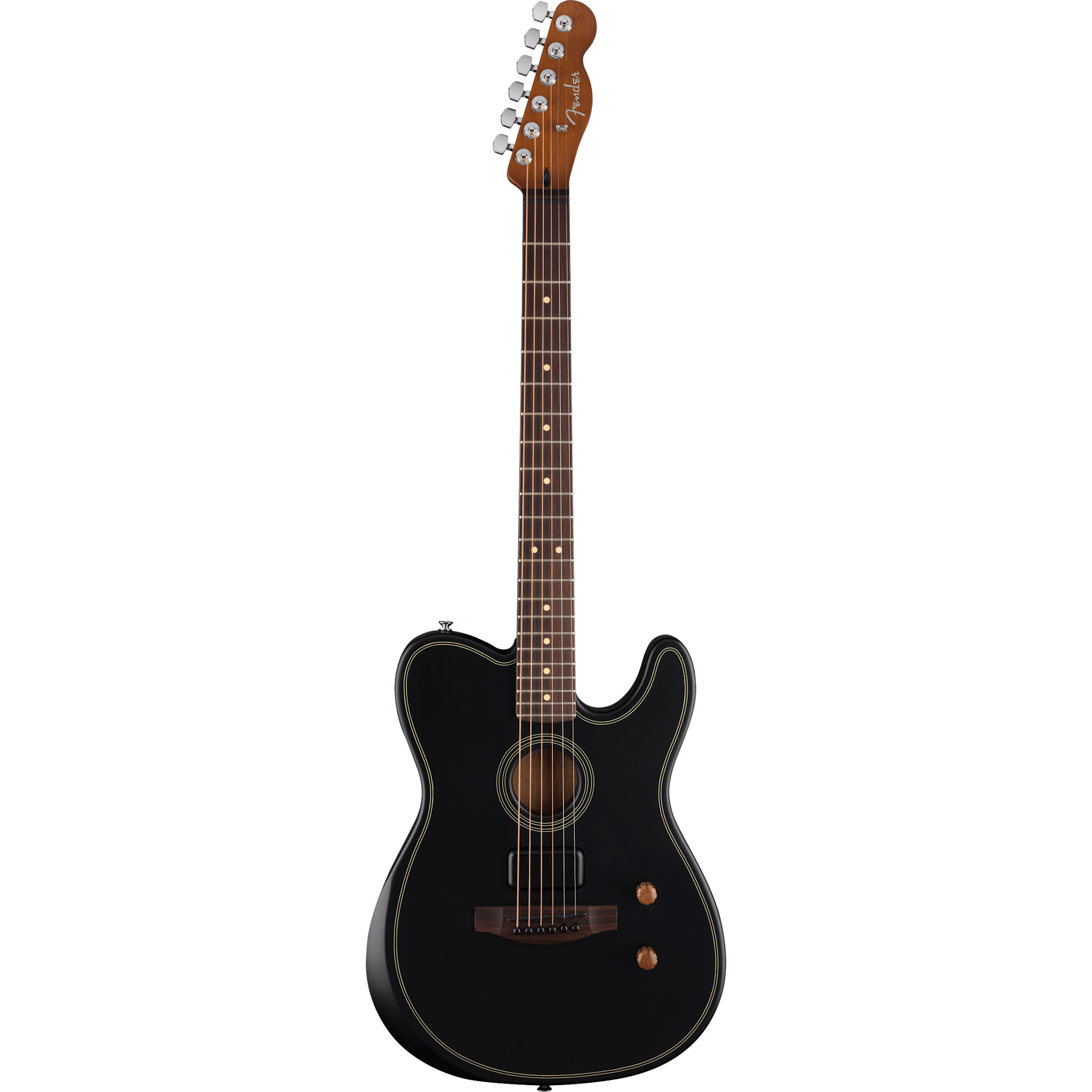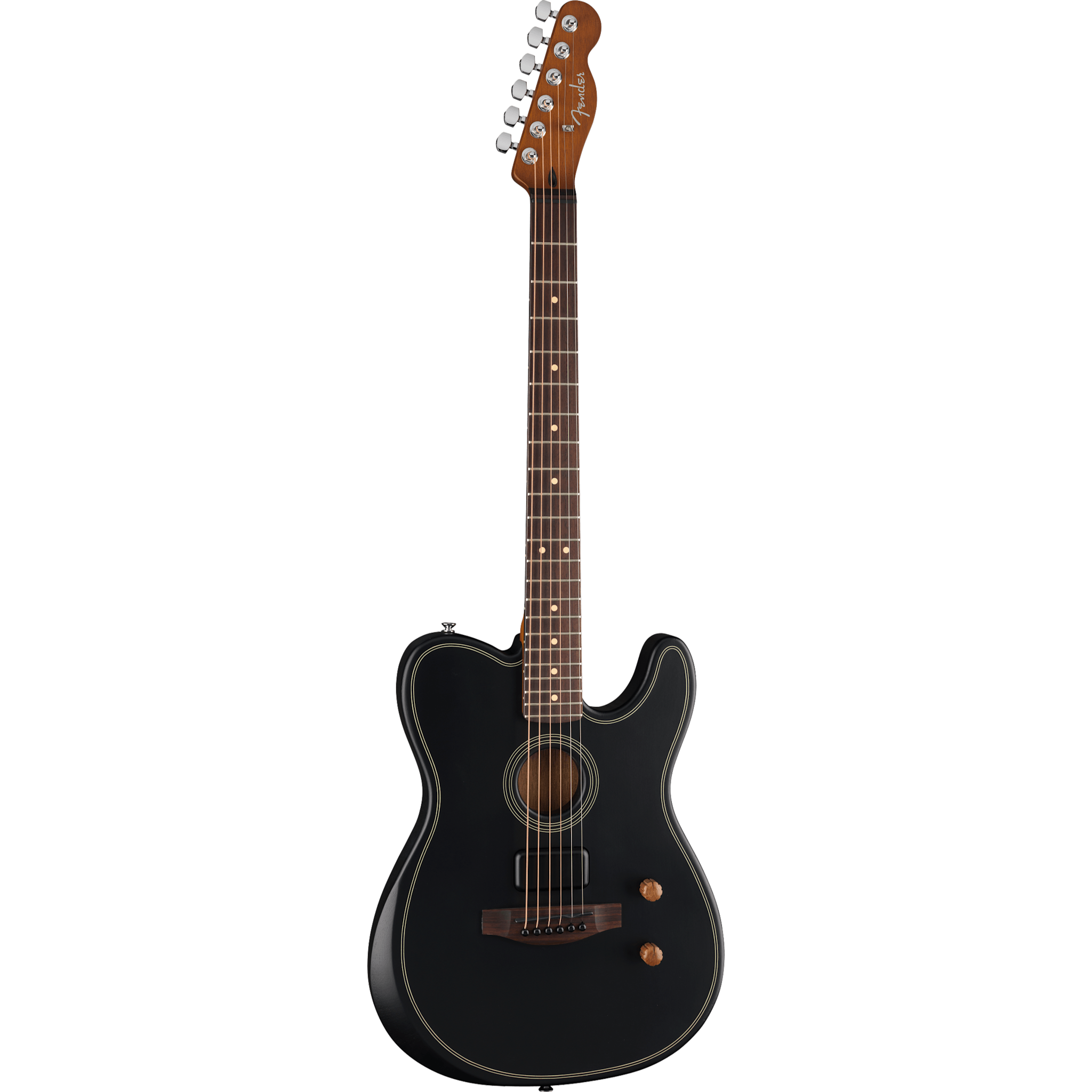 The dual personality of the Acoustasonic Standard Telecaster® equips players with a versatile spectrum of acoustic and electric tones in a single creative tool. With a braced solid Sitka spruce top, fully chambered body, inventive Fender and Fishman®-designed analog electronics with volume and blend control, and the familiar playing feel of a Fender icon, this Tele® truly sets the standard for the Acoustasonic experience.