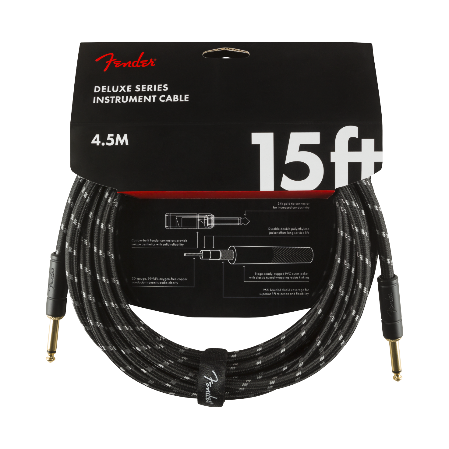 Fender Deluxe Series Instrument Cable, Black Tweed, 15’