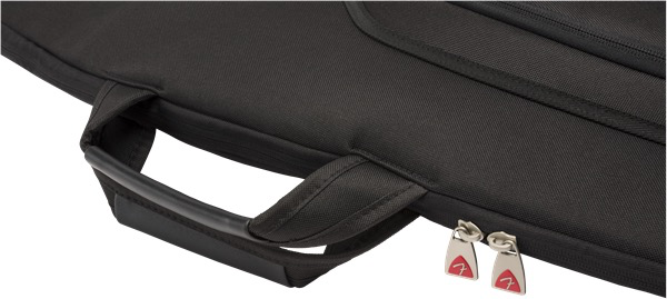 Fender's 610 Series gig bag is a stylish and affordable way to keep your electric guitar safe while traveling. Featuring our iconic asymmetrical Fender shape, its durable outer layer is constructed of tough 600 Denier polyester that protects against impacts while avoiding ripping and tearing. Its interior is filled with 10mm padding and lined with soft touch microfiber that keeps your instrument secure while preventing potential finish damage. The 610 gig bag also comes with a comfortable two-piece handle and ergonomic air mesh backpack straps with easily adjustable ladder lock buckles, so you can comfortably carry your instrument without unnecessary physical strain. Plus, the front storage pocket offers additional storage space for small accessories and a business card window.