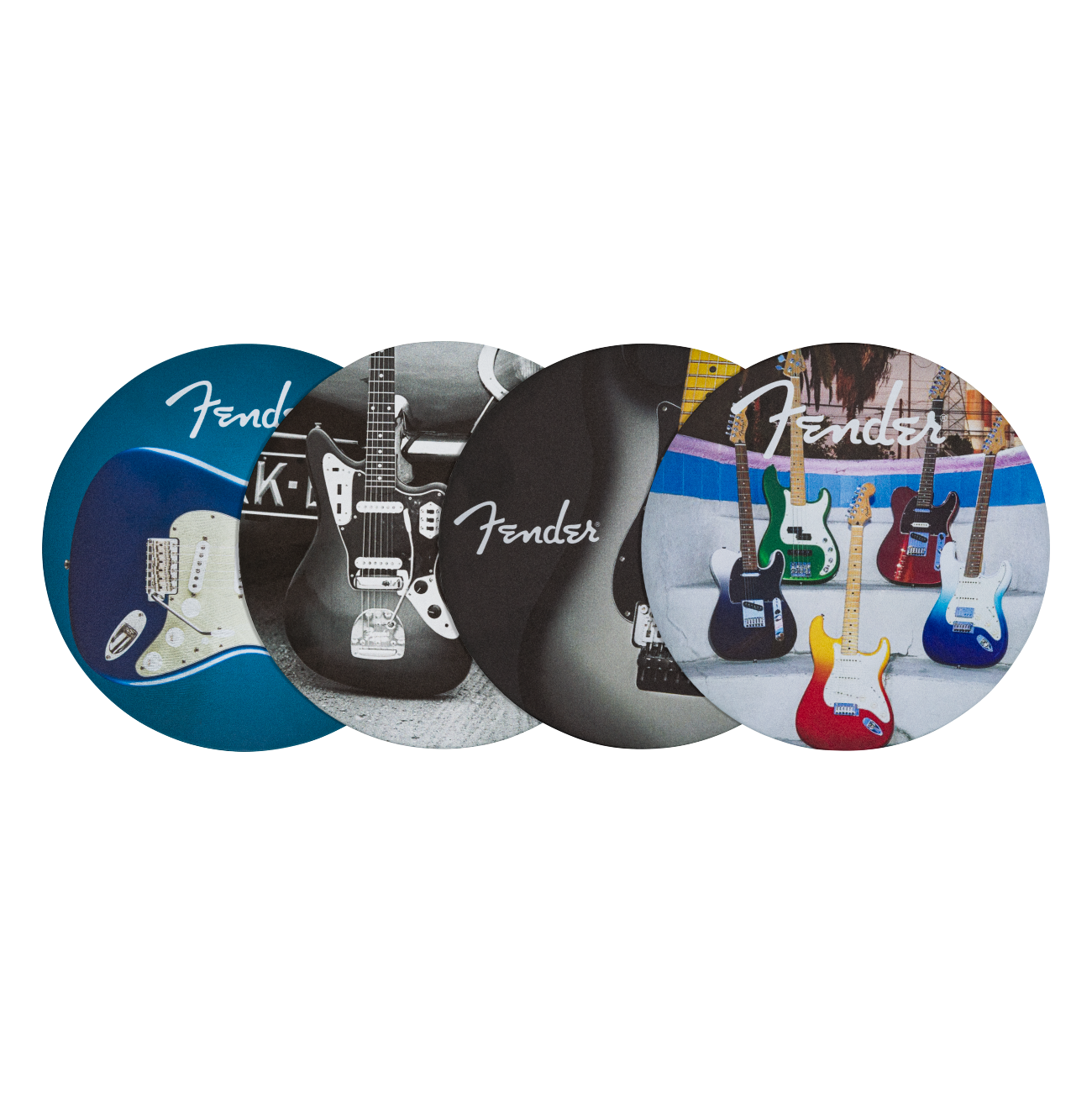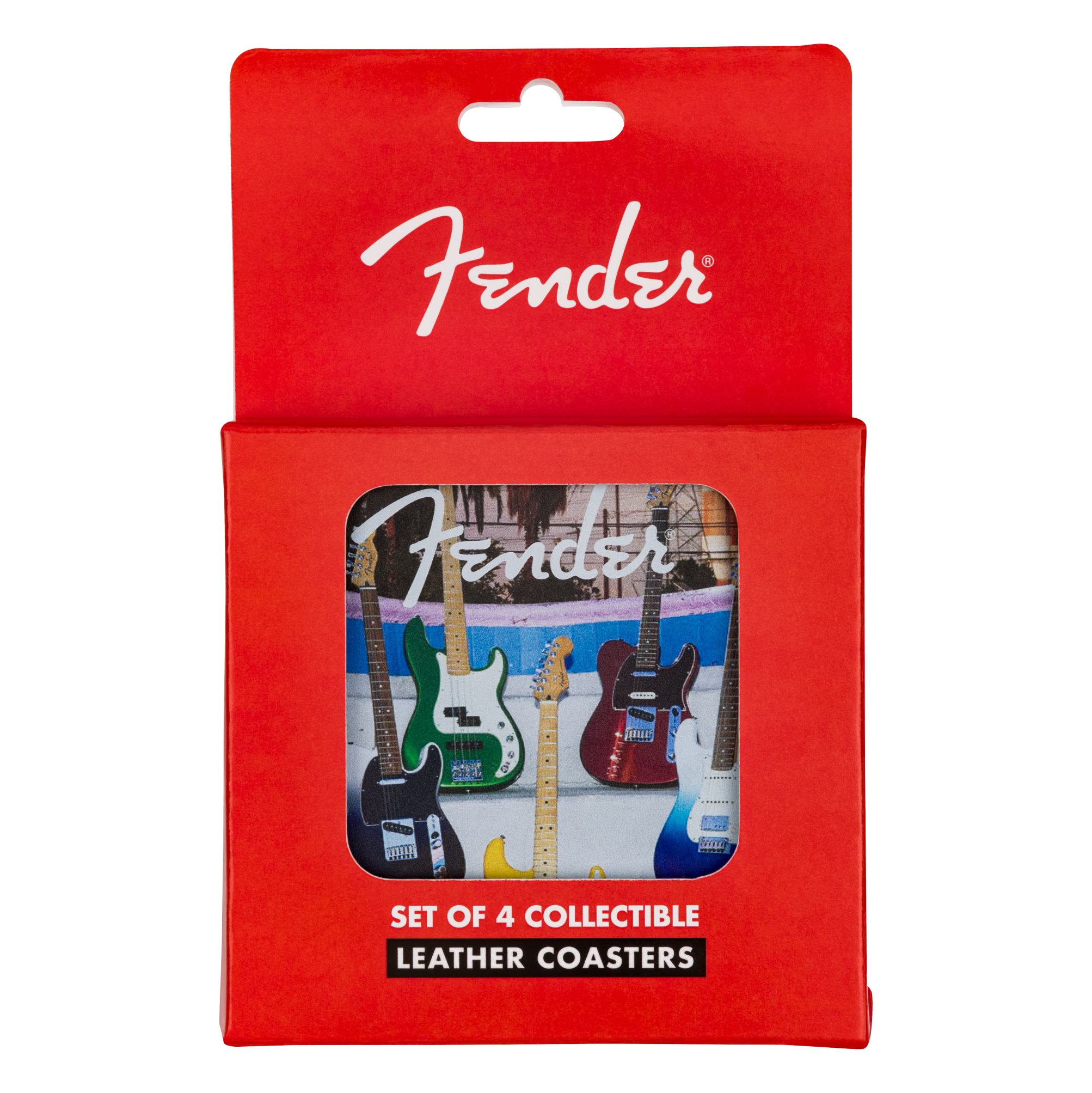 - 4 pack leather coaster set, each dipicting Fender® guitars