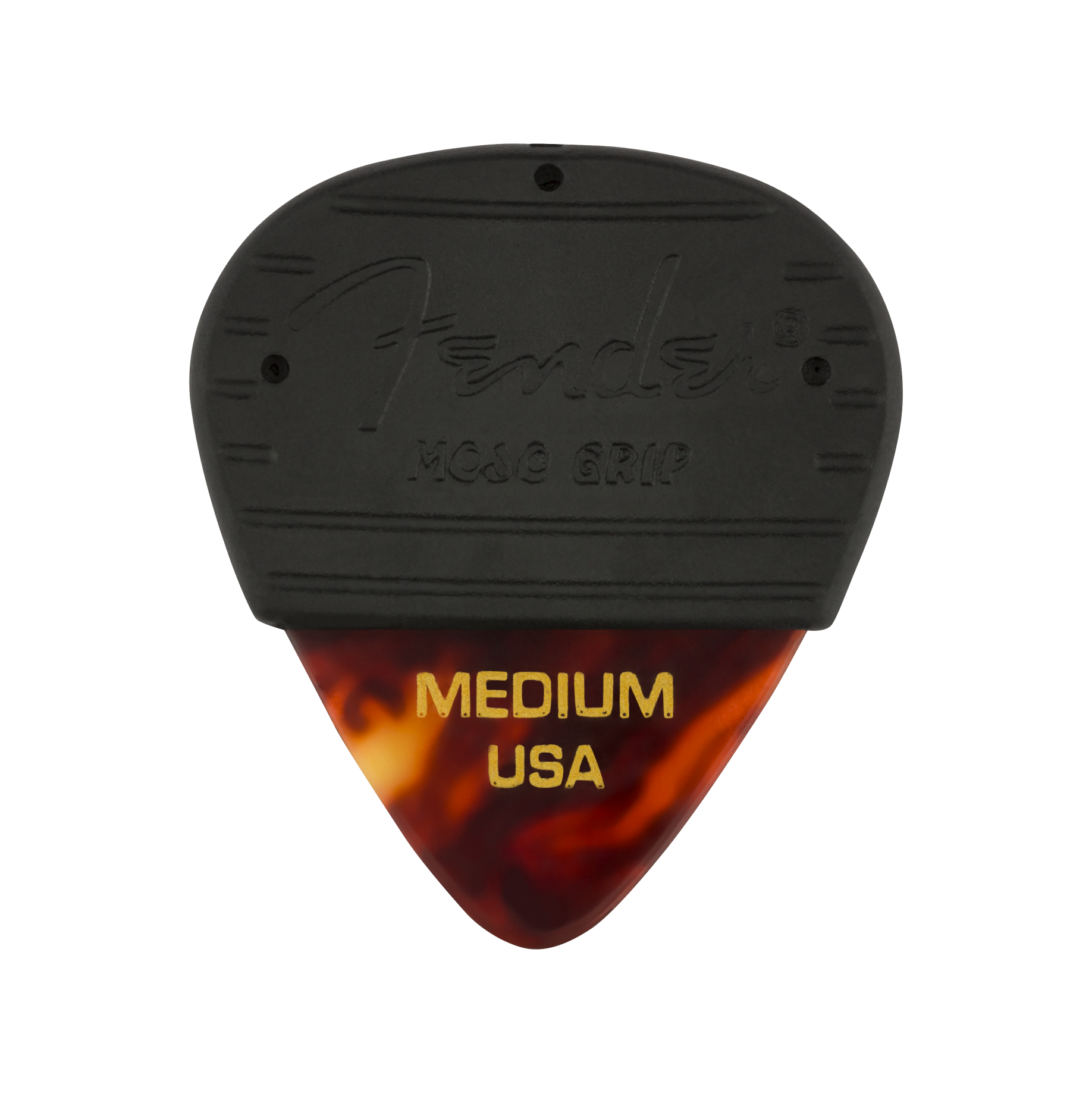 The Fender Mojo Grip™ is a nitrile rubber sleeve that provides a better gripping surface, and extra thickness to a 351 shape pick. The grips come with a Celluloid pick already in place. The best part of the Fender MojoGrip™ is that the grip is separate from the pick. If you wear down or break your pick, just carefully slide the pick out of the grip and replace it with another pick.