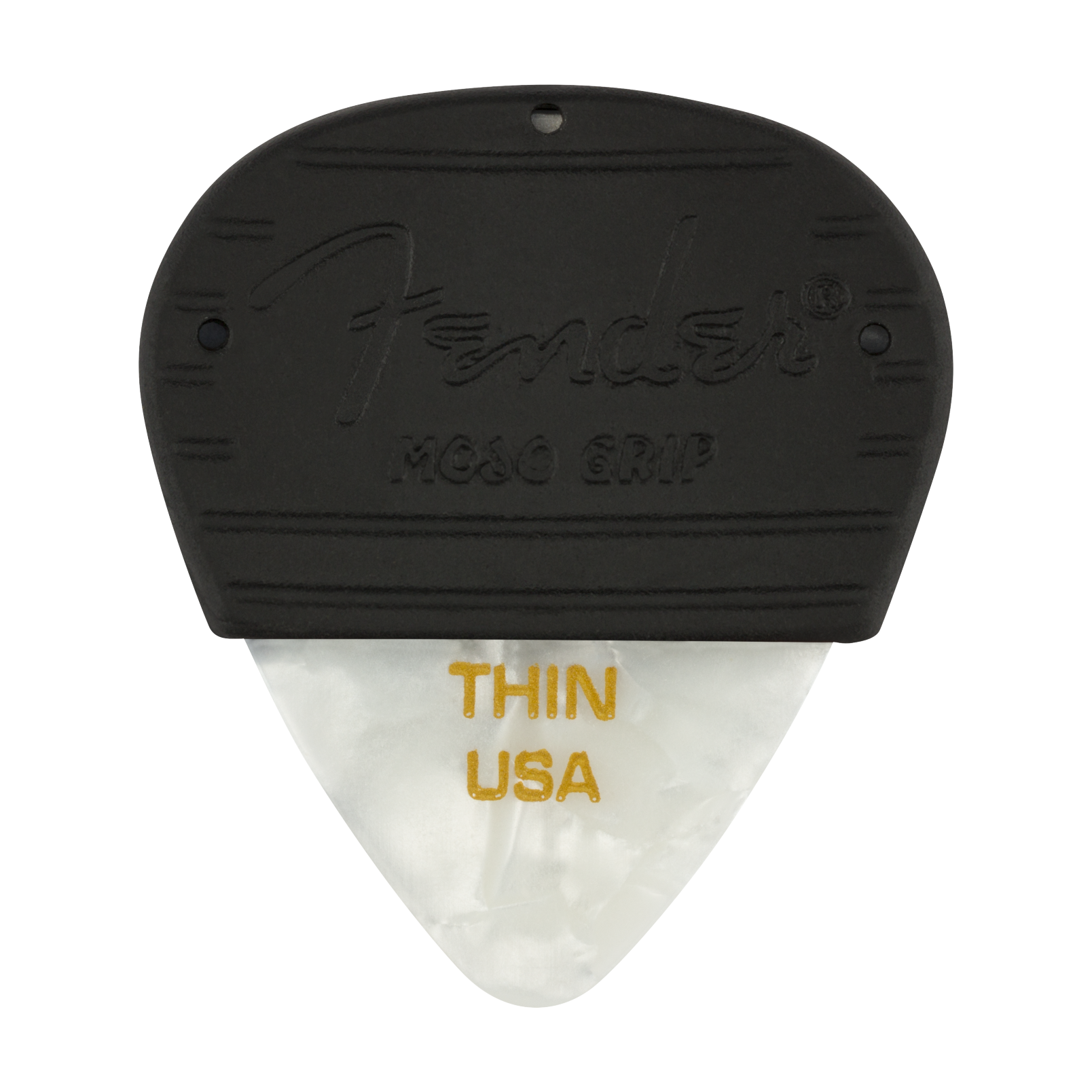 The Fender Mojo Grip™ is a nitrile rubber sleeve that provides a better gripping surface, and extra thickness to a 351 shape pick. The grips come with a Celluloid pick already in place. The best part of the Fender MojoGrip™ is that the grip is separate from the pick. If you wear down or break your pick, just carefully slide the pick out of the grip and replace it with another pick.