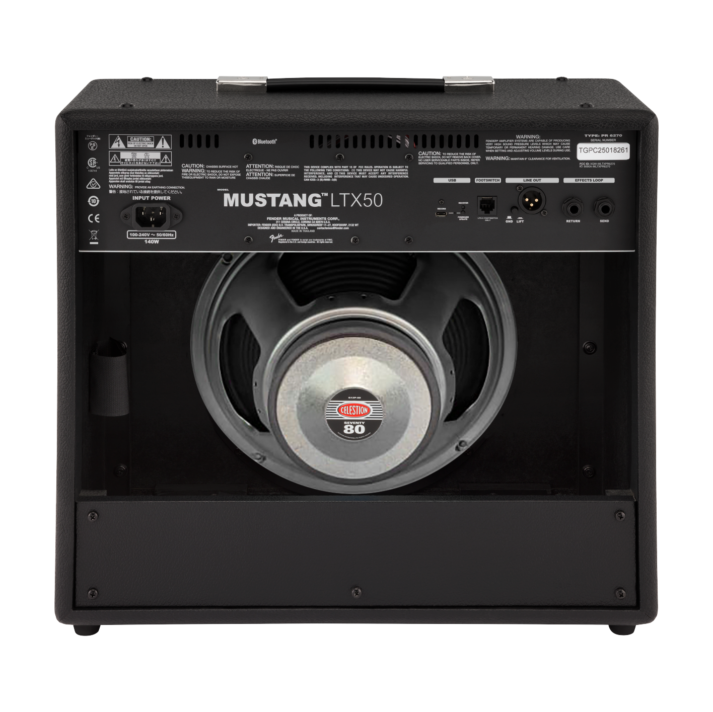 Mustang® LTX 50 is ideal for practice or performance with a 12" Celestion® G12P-80 speaker and an optional gig-ready 5-button footswitch. Onboard Bluetooth® allows you to jam along with your favorite songs as well as create, edit, download and share presets using the Fender TONE® app.
