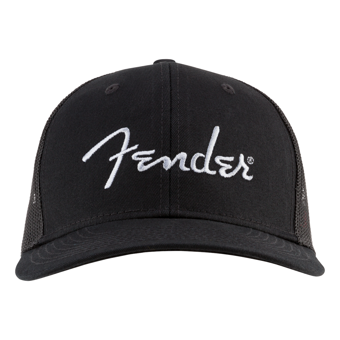 Fender Silver Thread Logo Snap Back Trucker Hat, Black, One Size Fits Most