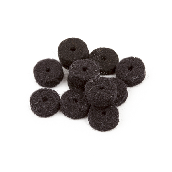 Set of 12 black felt washers used to buffer strap buttons from instrument finishes.
