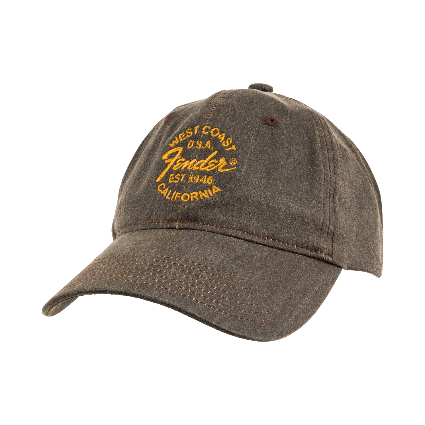 A classic dad hat with bold West Coast attitude. Crafted from soft, washed twill cotton in an oil color finish, this unstructured 6-panel hat brings vintage, old-school style to any outfit. Featuring a gold embroidered “West Coast” logo on the front, it’s the perfect everyday hat to show off your Fender pride. Finished with a metal adjuster for a custom, all-day comfortable fit.