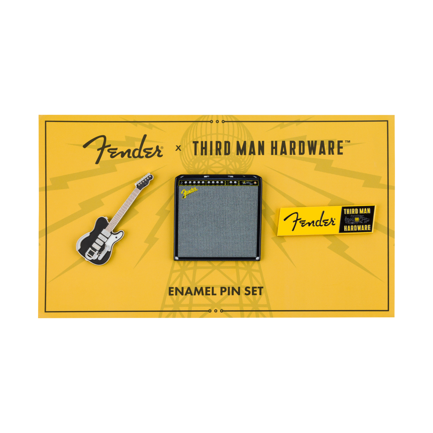 The Third Man Hardware™ Lapel Pin set brings the raw, analog energy of Fender® and Third Man Hardware™ into your everyday fit. Featuring bold designs inspired by the iconic Pano Verb™ Amp and signature Jack White Triplecaster™ Telecaster® these pins are built for fans who live and breathe the sound. Stick ‘em on your jacket, your bag, your amp case—wherever you want to flash a little attitude. Wear the noise!!!