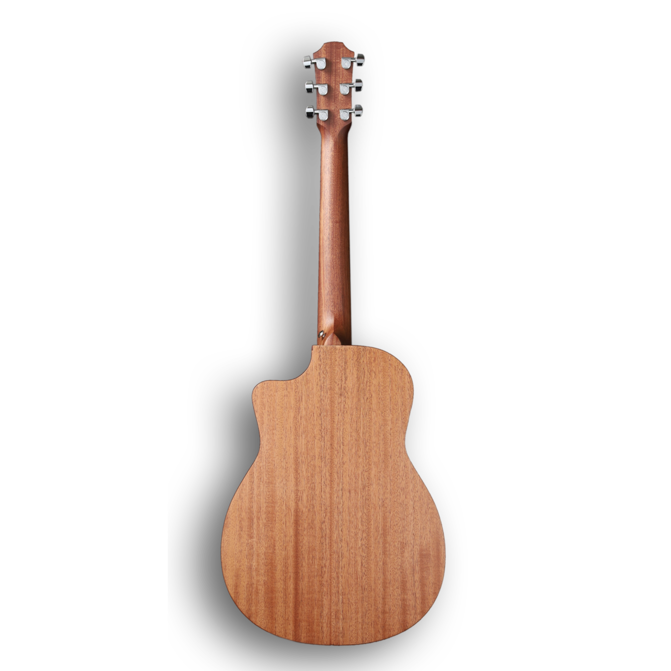 The Pioneer ER features elegant black binding that enhances its sleek appearance, highlighting the natural beauty of its all-solid top, back, and sides.