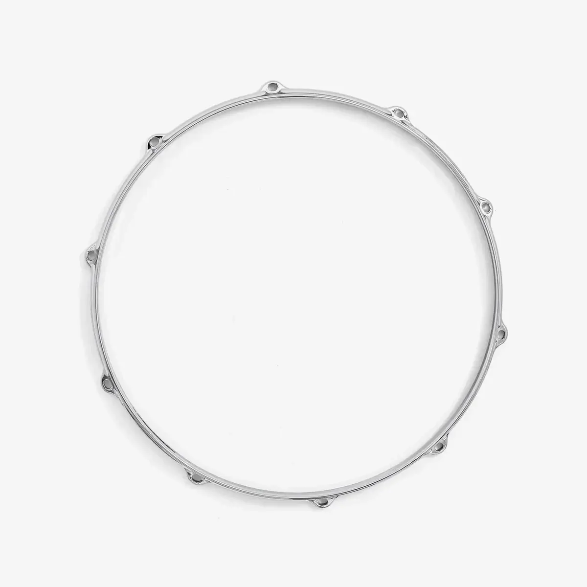 Die-cast steel batter hoop with reinforced tension points and large snare gates. Upgrade your snare with a die-cast batter hoop built for projection and durability. Finished in polished chrome, this hoop features reinforced tension points and oversized snare gates to ensure precise tuning and long-term stability. Slightly oversized to reduce head choke and enhance drum response. Snare-side hoop sold separately.