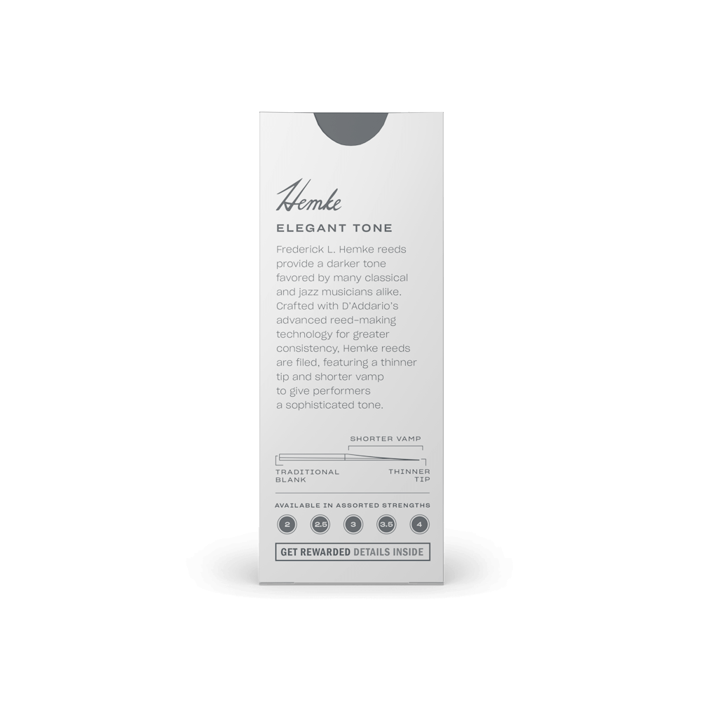 A wide variety of musicians prefer Frederick L. Hemke reeds because their filed, thinner tip and shorter vamp provide both beginners and seasoned performers with a warm, sophisticated tone.