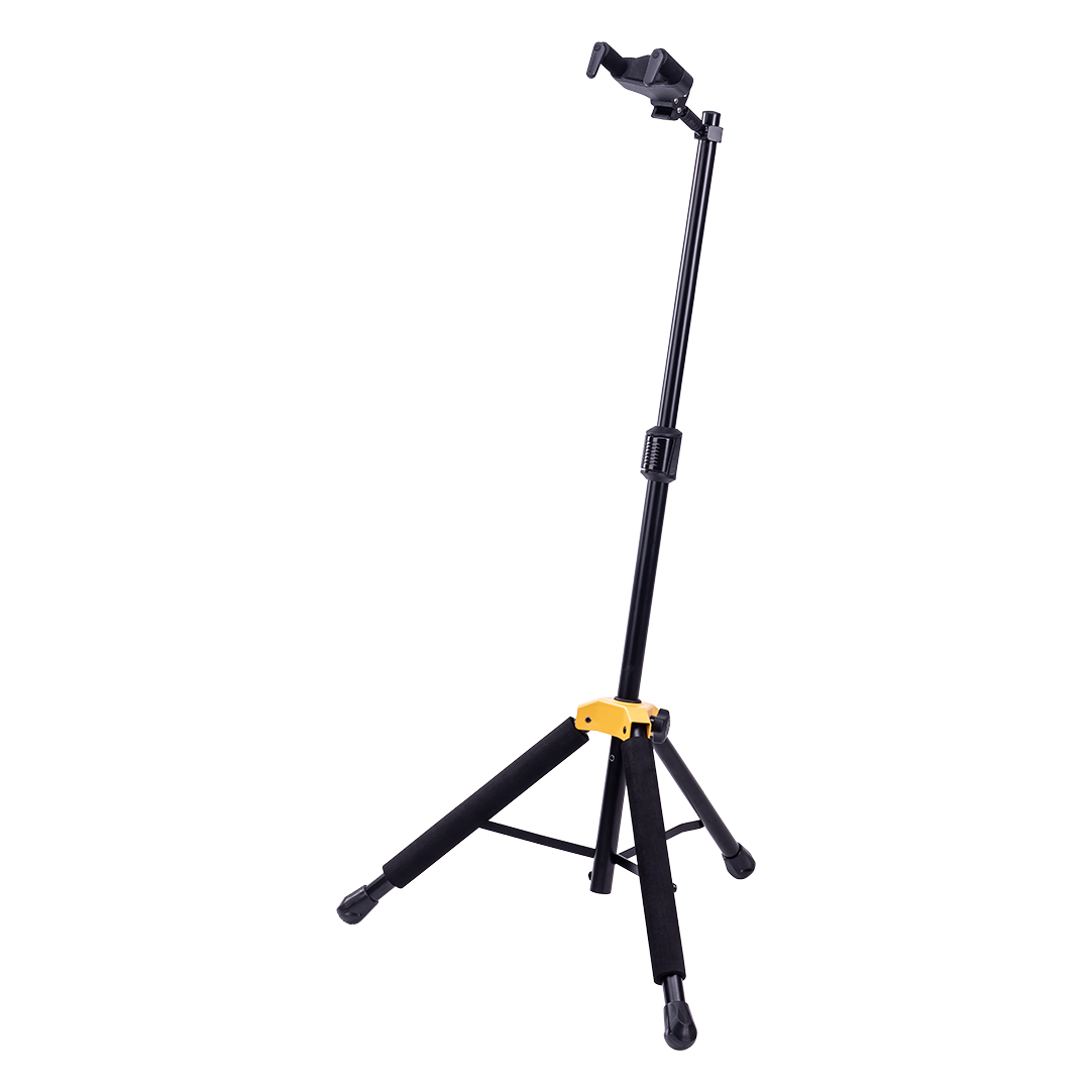 The HERCULES Guitar Stand GS415B PLUS features the foldable Auto Grip System (AGS) yoke, Instant Height Adjustment Clutch and Specially Formulated Foam (SFF) padding on all contact points