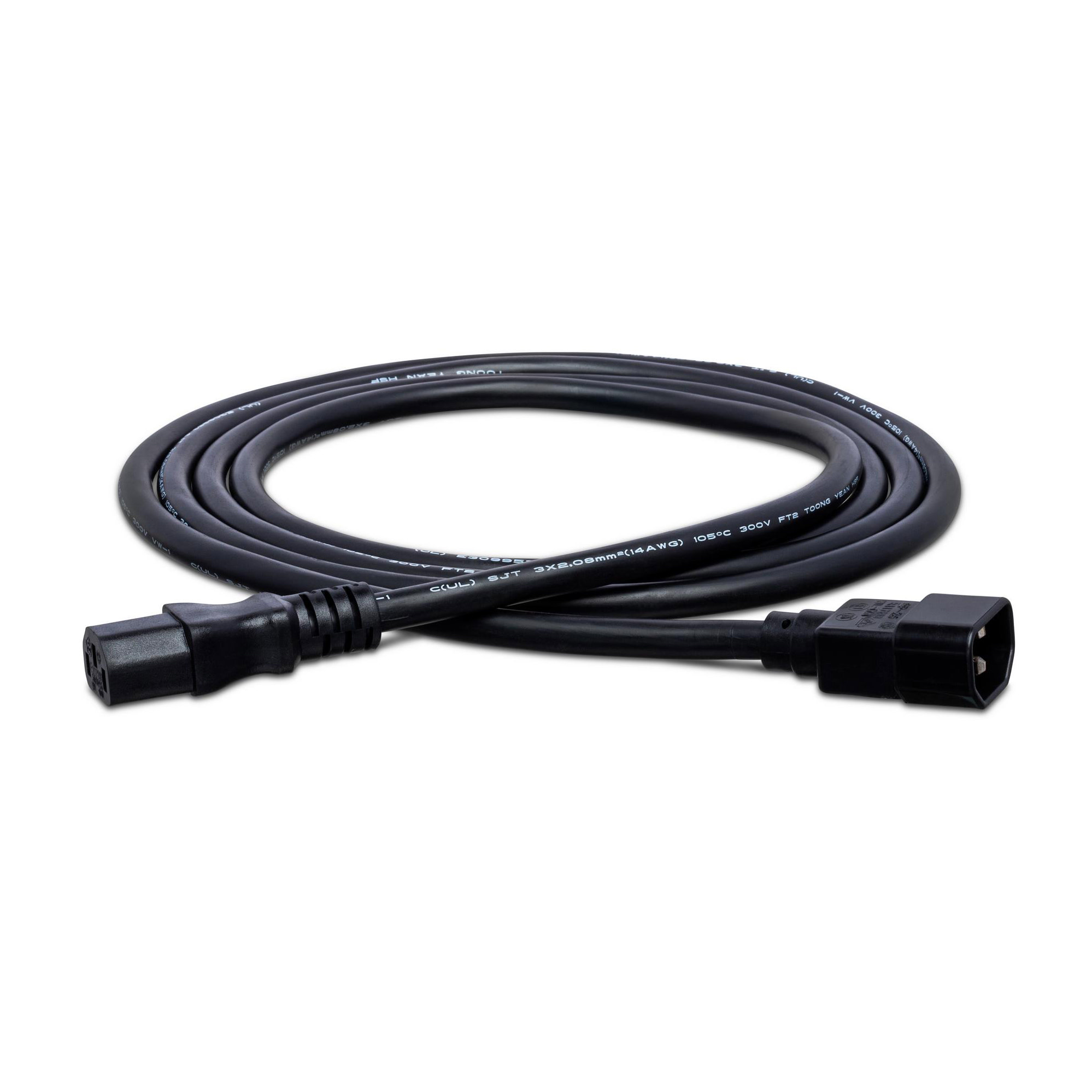 This cable is designed to connect an electrical appliance with a C13 outlet to one with a C14 inlet. It is ideal for daisy chaining lighting effects and similar gear connected in series. Features include: