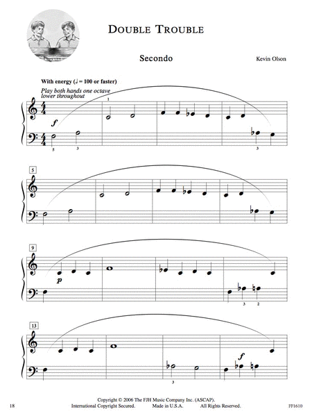 Book 1 gives students a fun and manageable introduction to duet playing! Students will experience the new joy of playing with another pianist, while learning about the important aspects involved. This book uses quarter, half, dotted half, and whole notes, and most pieces call for a limited use of hands together playing. Features arrangements of Ode to Joy; Are You Sleeping?; Take Me Out to the Ball Game; and many more, plus originals.