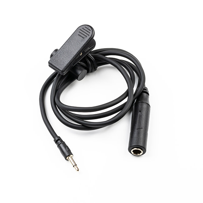 Two cables are included — one 9-ft. 1/8" to 1/4" and one 3-ft. 1/8" to female 1/4" jumper with safety clip to connect with your instrument cable.