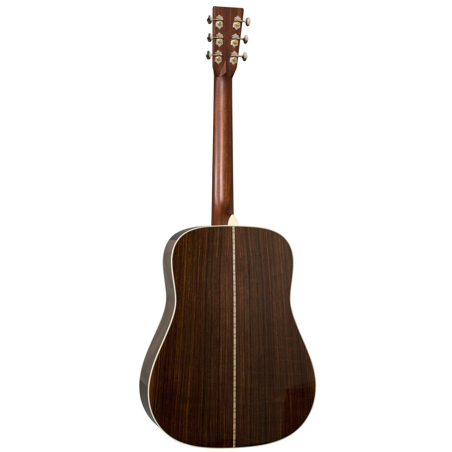 The Martin D-28 is widely regarded as the most iconic acoustic guitar in the world, trusted by generations of players and played by countless legends across genres. Its Dreadnought body size and scalloped bracing delivers the bold, projective tone with strong bass, clear trebles, and rich overtones that has defined acoustic music for nearly a century. Handcrafted with a solid spruce top and solid East Indian rosewood back and sides, the D-28 produces a resonant voice that’s beautifully balanced for all playing styles. The satin neck, featuring a Golden Era (GE) Modified Low Oval profile, high-performance taper, and 25.4" scale length, ensures smooth, effortless playability. With antique white binding, an ebony fingerboard with mother of pearl dot inlays, an ebony bridge with bone pins, and nickel open gear tuners, the D-28 blends timeless craftsmanship with modern playability. Available in a variety of gloss and satin options, the D-28 is the guitar you can trust to unleash the artist within.