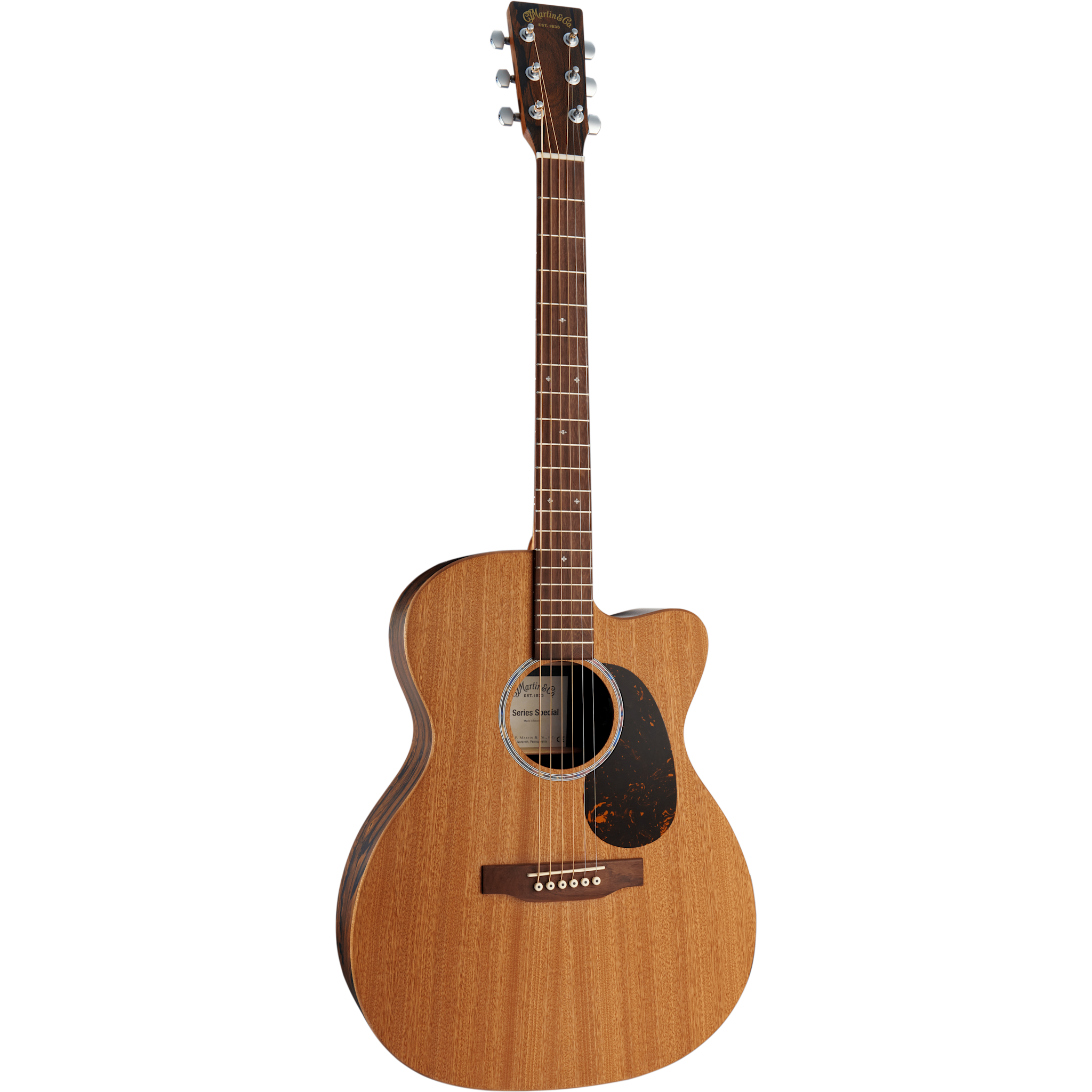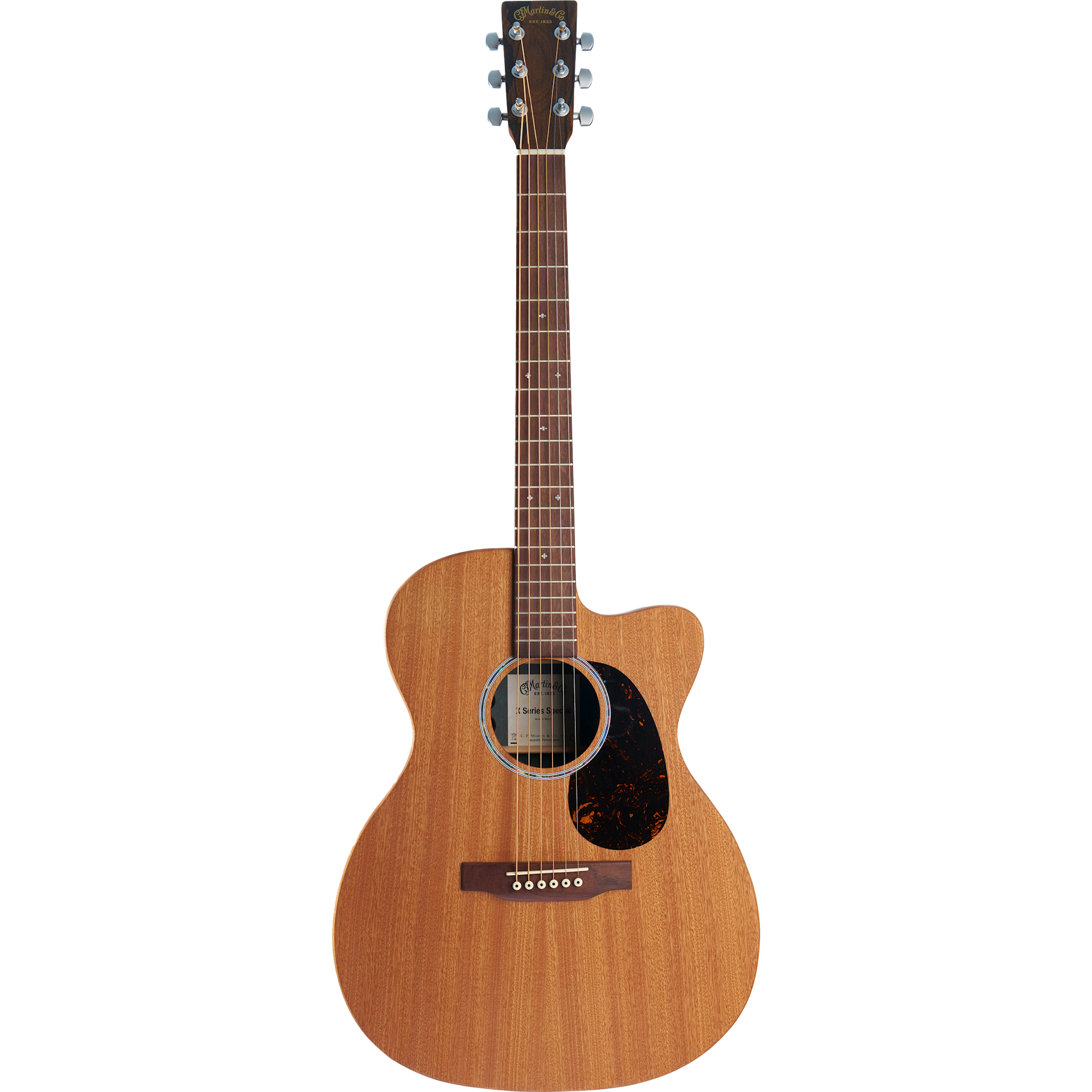 Available for a limited time, the OMC-X2E Ziricote Special is an exciting new addition to the X Series, bringing a versatile Orchestra Model cutaway to the lineup. With the same comfortable 000 body size and a longer 25.4" scale length, it offers enhanced projection, sustain, and a balanced tone across all six strings. A solid sapele top delivers warmth and punchy midrange, while ziricote-patterned high-pressure laminate (HPL) back and sides add durability and eye-catching style. Inside, scalloped X-bracing enhances resonance, and a hand-applied finish gives the guitar a natural, understated aesthetic. The Performing Artist neck profile with a high-performance taper ensures a smooth, effortless playing experience, while the cutaway provides easy access to higher frets. When it’s time to plug in, Martin E1 electronics offer volume, tone, and phase controls for shaping your sound, plus a built-in chromatic tuner for quick, silent tuning. With satin chrome enclosed gear tuners for rock-steady stability and a softshell case included, this guitar is truly made to play—wherever inspiration strikes.