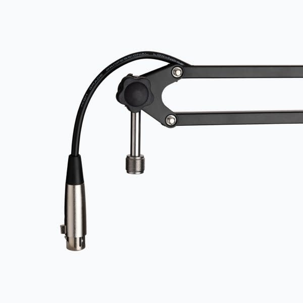 The MBS5000 Broadcast Mic Boom Arm is a reliable articulating mic boom for broadcast and webcast that provides quiet, easy positioning even while on air. Heavy-duty construction ensures strength and durability while two pairs of springs provide appropriate counterbalance for popular broadcast mics and oversized shock mounts. The pre-installed internal XLR cable simplifies cable management and declutters your studio. Installation is easy with a choice of a removable C-clamp for desktops or a screw-in flange mount for any flat surface.