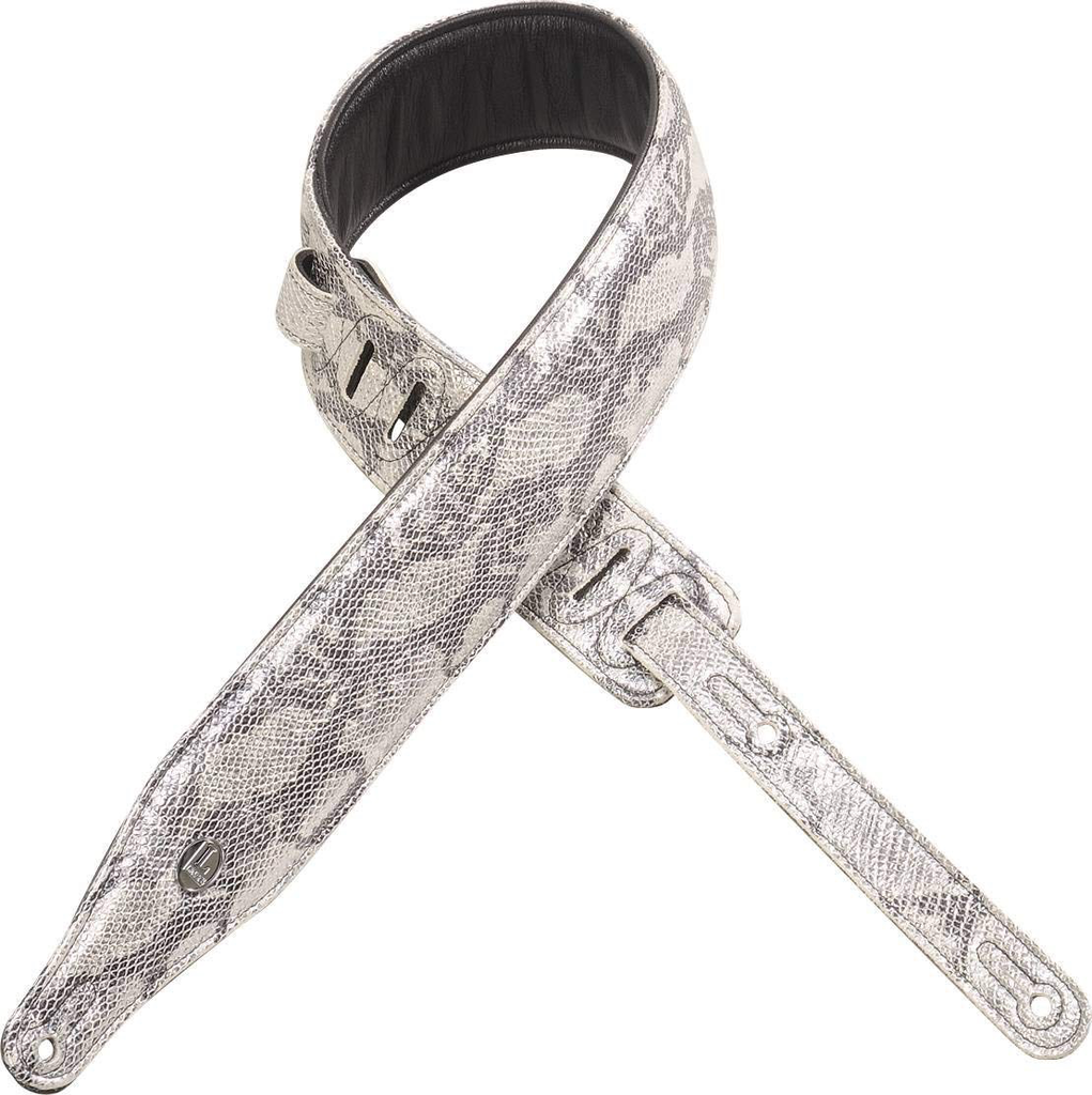 Levy's 2.5" Leather Guitar Strap w/Metallic Snake Skin Facade, Silver