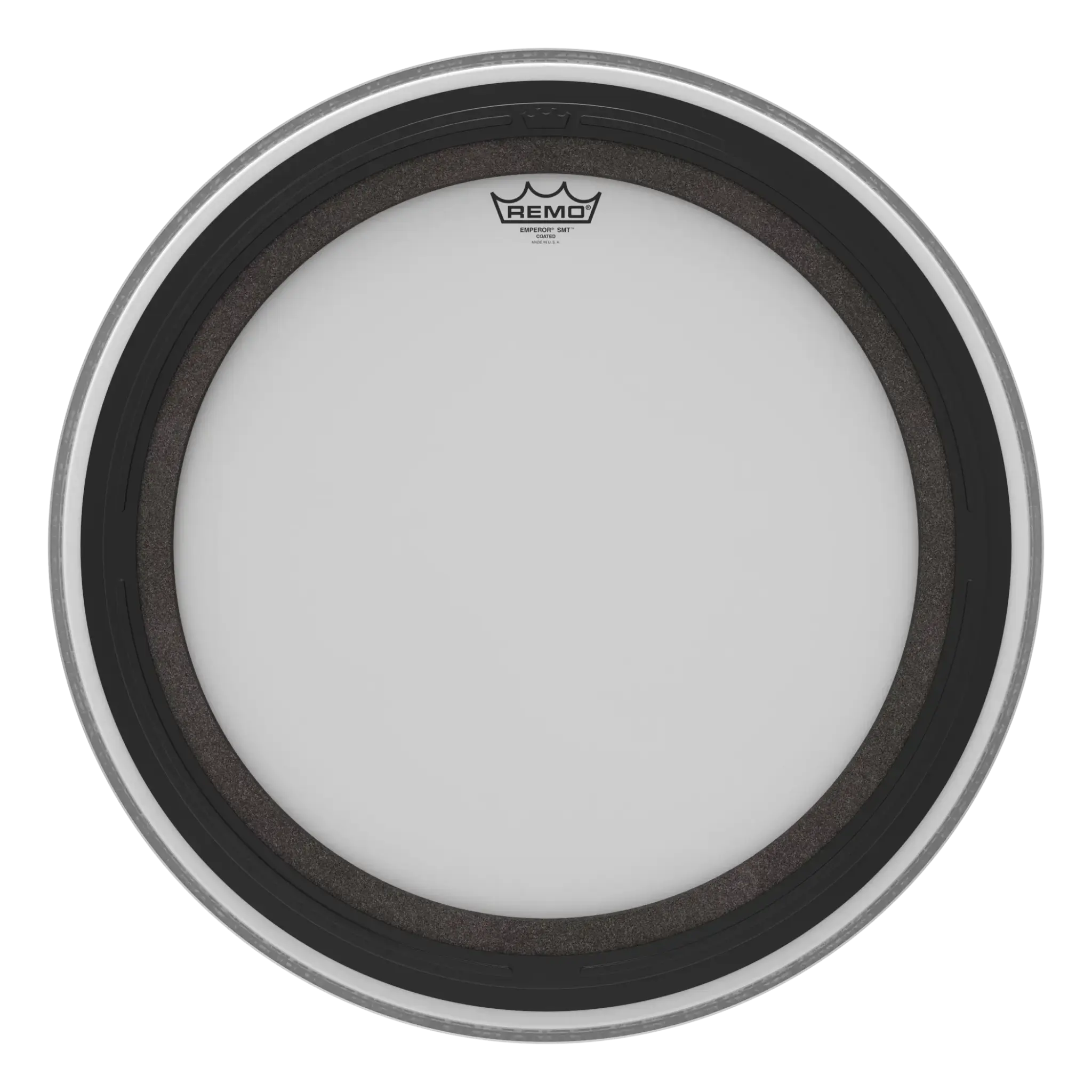 The Emperor® SMT™ Coated bass drumhead is a pre-muffled design featuring Sub Muffl® Technology. It is constructed with 2-plies of 7-mil and 5-mil Coated film, and an externally mounted dampening profile with free-floating acoustic foam. It enables the head and drum shell to maintain full sound characteristics with additional attack and low-end frequencies. SMT technology allows a broad tonal spectrum of tuning ranges with controlled high and mid frequencies coupled with deep, powerful low tones. It is a new industry standard and one of the market's most musical and versatile pre-muffled bass drumheads. Ideal for live and recording applications. Available in sizes 16" through 24 inches.