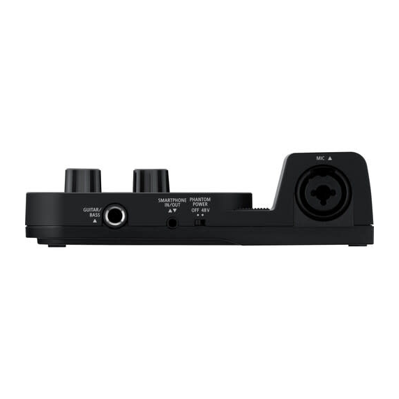 - Combo jack supports standard mics with XLR or ¼-inch plugs; 48 V phantom power available via XLR