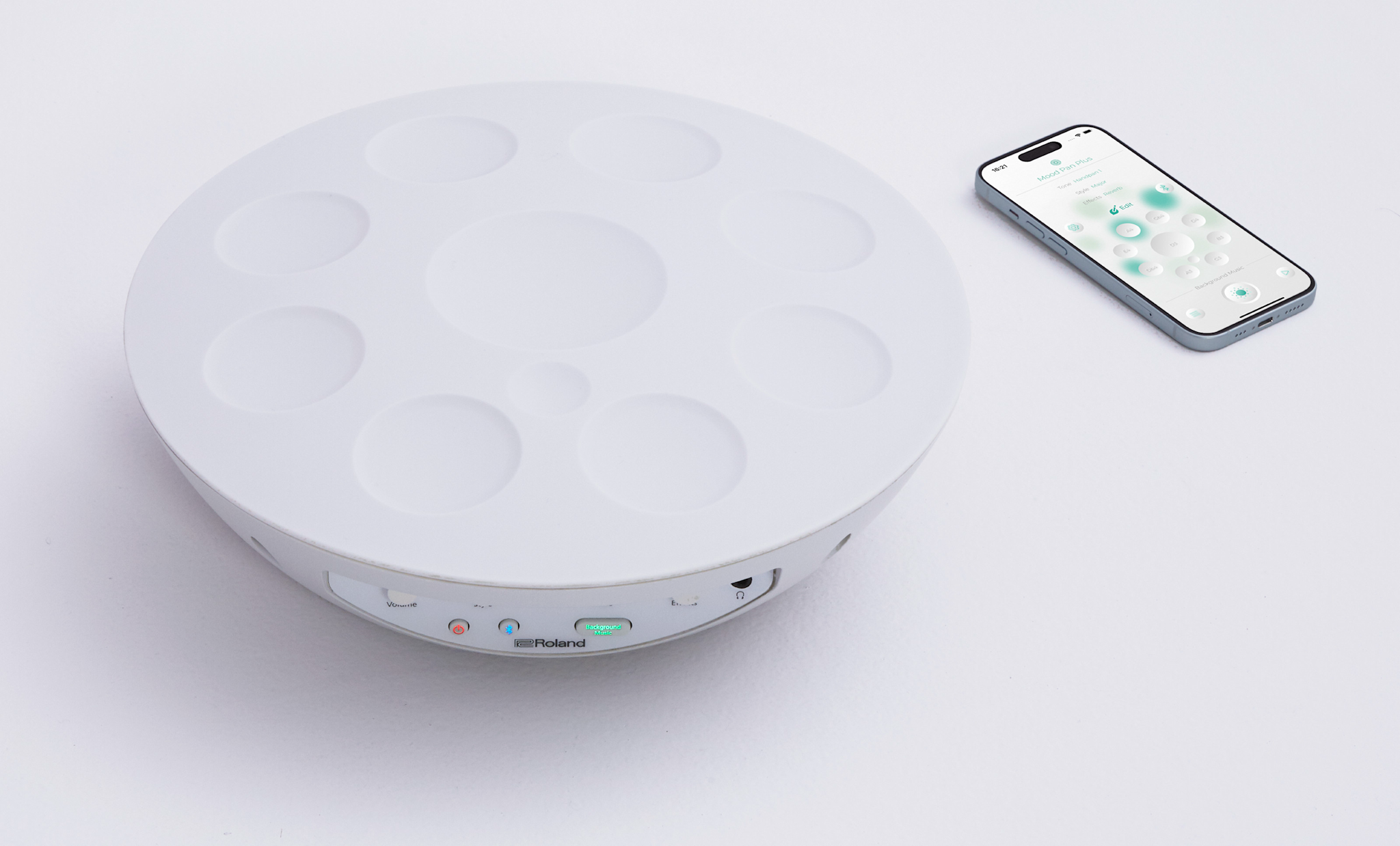 Mood Pan is made for mindful creators and modern musicians seeking a versatile and expressive new instrument. It blends the soulful resonance of acoustic handpans with multiple sound variations and other flexible features made possible with Roland’s advanced percussion technology. While many musical instruments require learning and skill development, Mood Pan can be enjoyed by everyone, with no experience or special technique necessary.