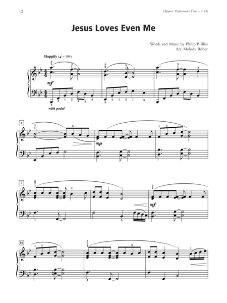 And Can It Be? (Amazing Love) * It's Just Like His Great Love * Jesus Loves Even Me * Jesus Loves Me * Love Lifted Me * More Love to Thee/My Jesus, I Love Thee * My Savior's Love * O Love That Will Not Let Me Go * O the Deep, Deep Love of Jesus * What Wondrous Love Is This?