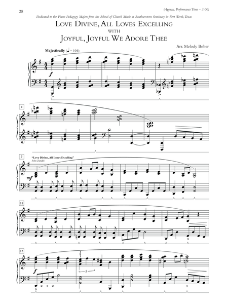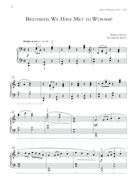 Ten favorite hymns, which vary from quiet meditation to exuberant exultation, include approximate performance times making them easy to incorporate into services. Titles: All Hail the Power of Jesus' Name * Blessed Assurance * Brethren, We Have Met to Worship * Fairest Lord Jesus * Holiness Medley (Jesus, I Come; Whiter Than Snow; Take Time to Be Holy) * Holy, Holy, Holy * Lead On, O King Eternal * Love Divine, All Loves Excelling/Joyful, Joyful We Adore Thee * O Worship the King * Our Great Savior.