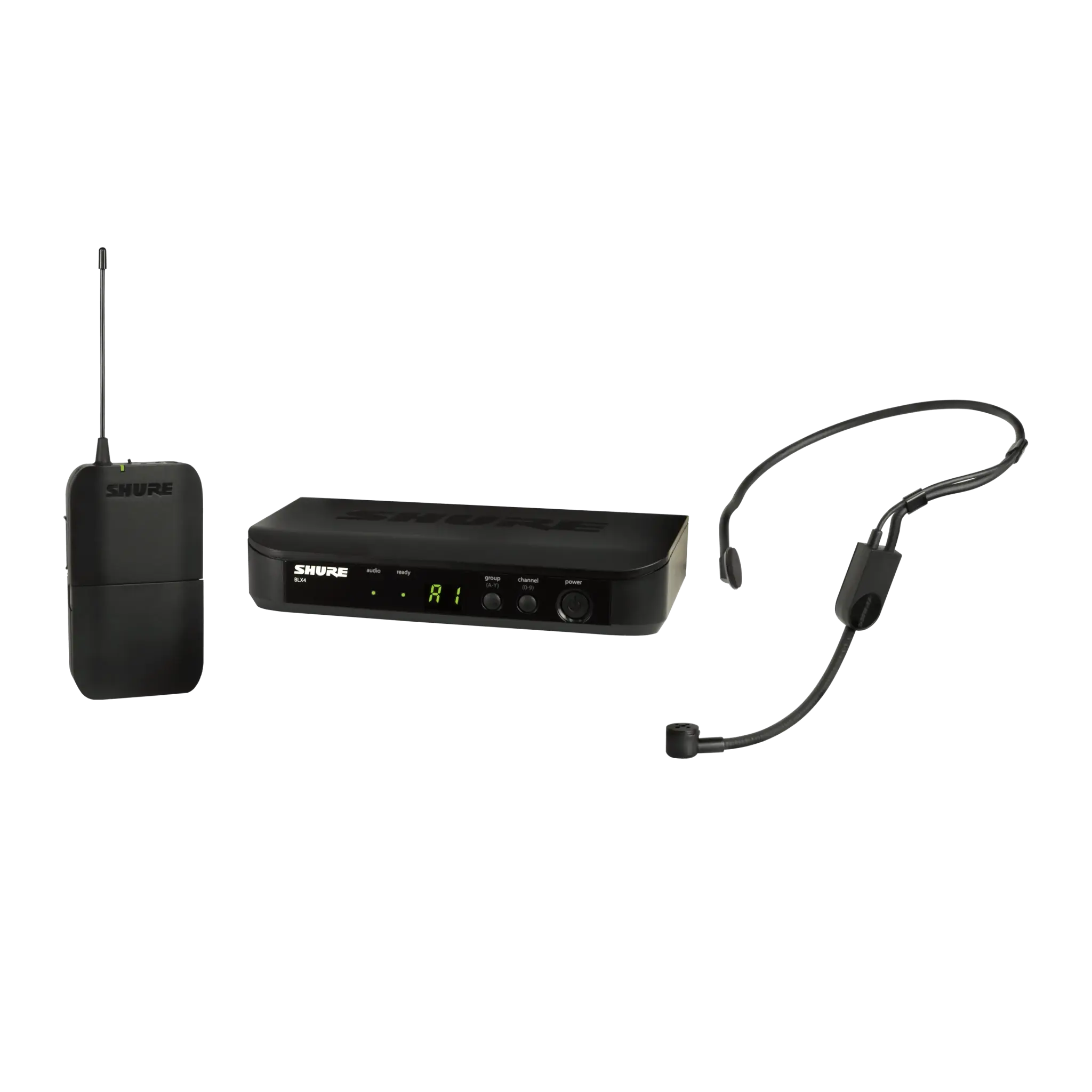 The Shure BLX14/PGA31 Wireless Headset System combines professional-quality sound with simple setup and up to 14 hours battery life for great audio performance right out of the box. The system includes BLX4 tabletop single-channel receiver, PGA31 headset microphone with BLX1 bodypack transmitter, clothing clip, power supply, 2 AA batteries, windscreens, and user guide.