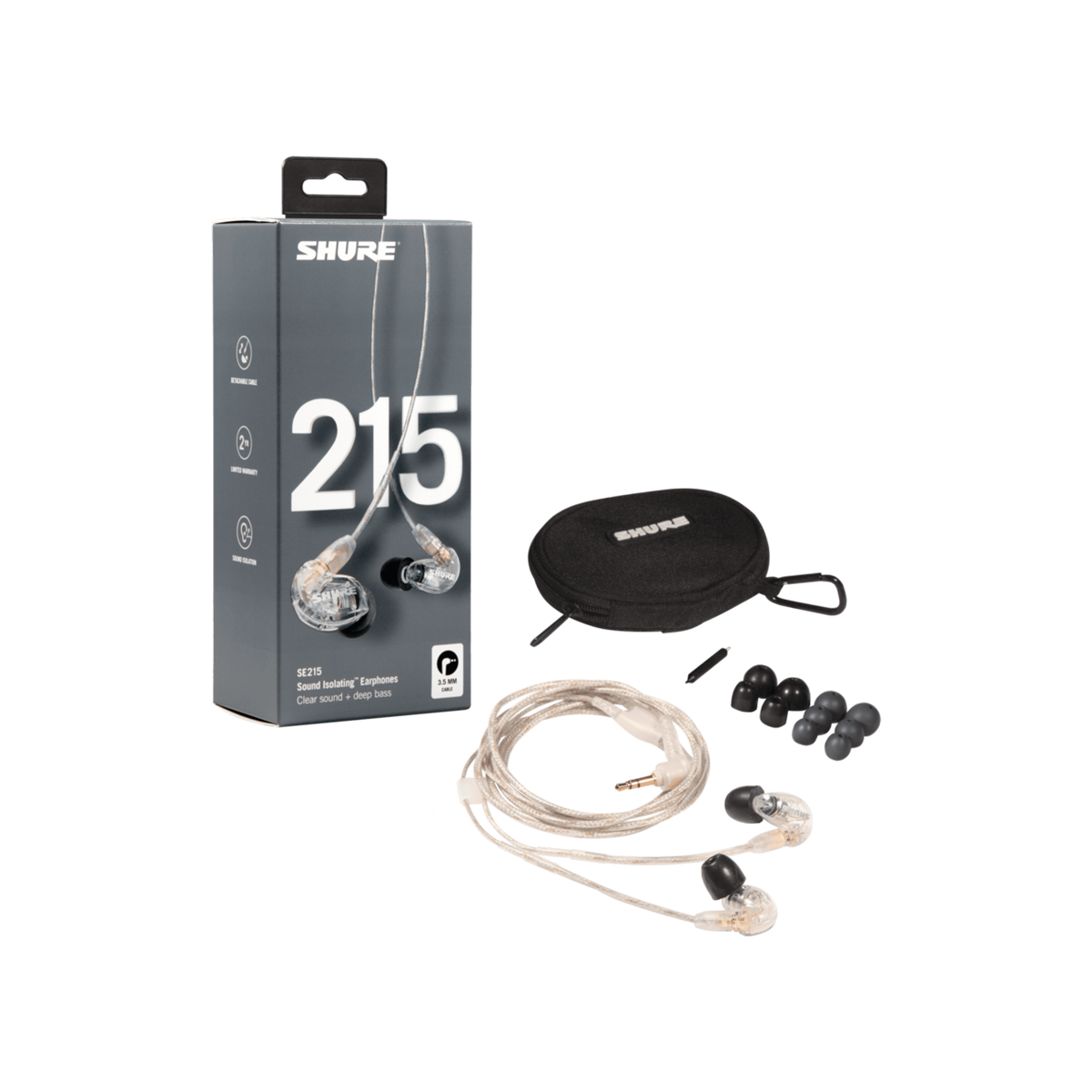 - Includes a two-year warranty, SE215 Detachable Sound Isolating Earphones, 3.5mm standard audio cable, fit kit with a variety of sleeves for the perfect fit, and a carrying case.