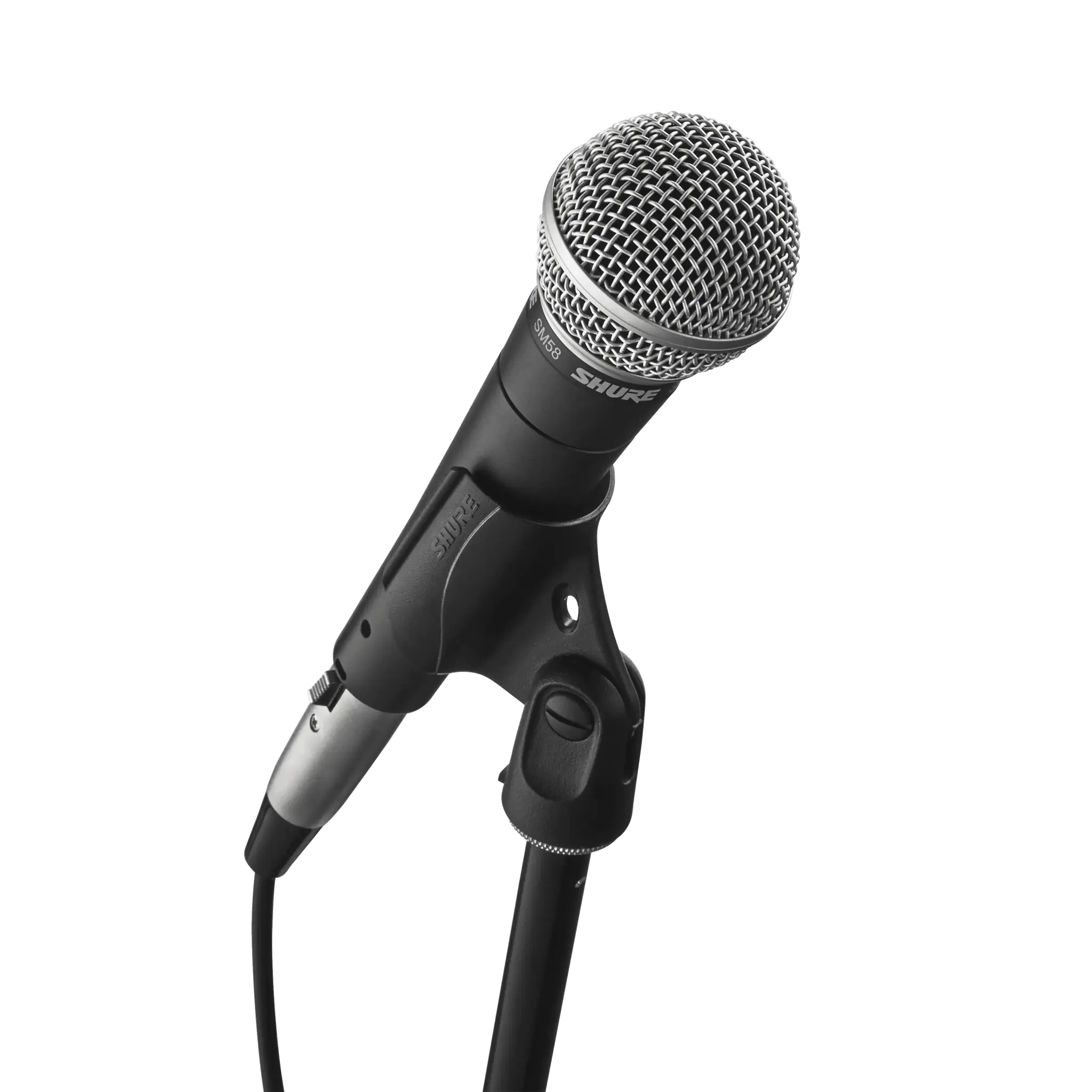 The legendary Shure SM58 vocal microphone is designed for professional vocal use in live performance, sound reinforcement, and studio recording. Its tailored vocal response for sound is a world standard for singing or speech. A highly effective, built-in spherical filter minimizes wind and breath "pop" noise. A unidirectional (cardioid) pickup pattern isolates the main sound source while minimizing unwanted background noise.