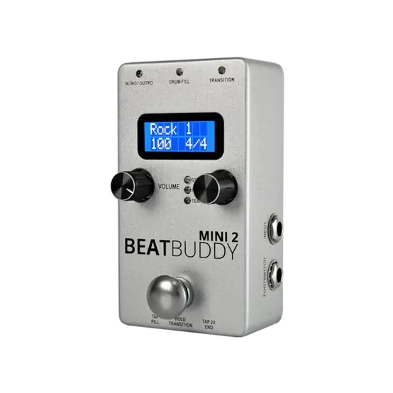 The BeatBuddy’s little brother packs massive sound into a compact, portable pedal. The perfect blend of a drum machine and stompbox, BeatBuddy MINI 2 lets you mix and match hundreds of styles, genres and drum sets. Switch song parts, add intros, transitions, and ever-shifting fills with the tap of a foot.