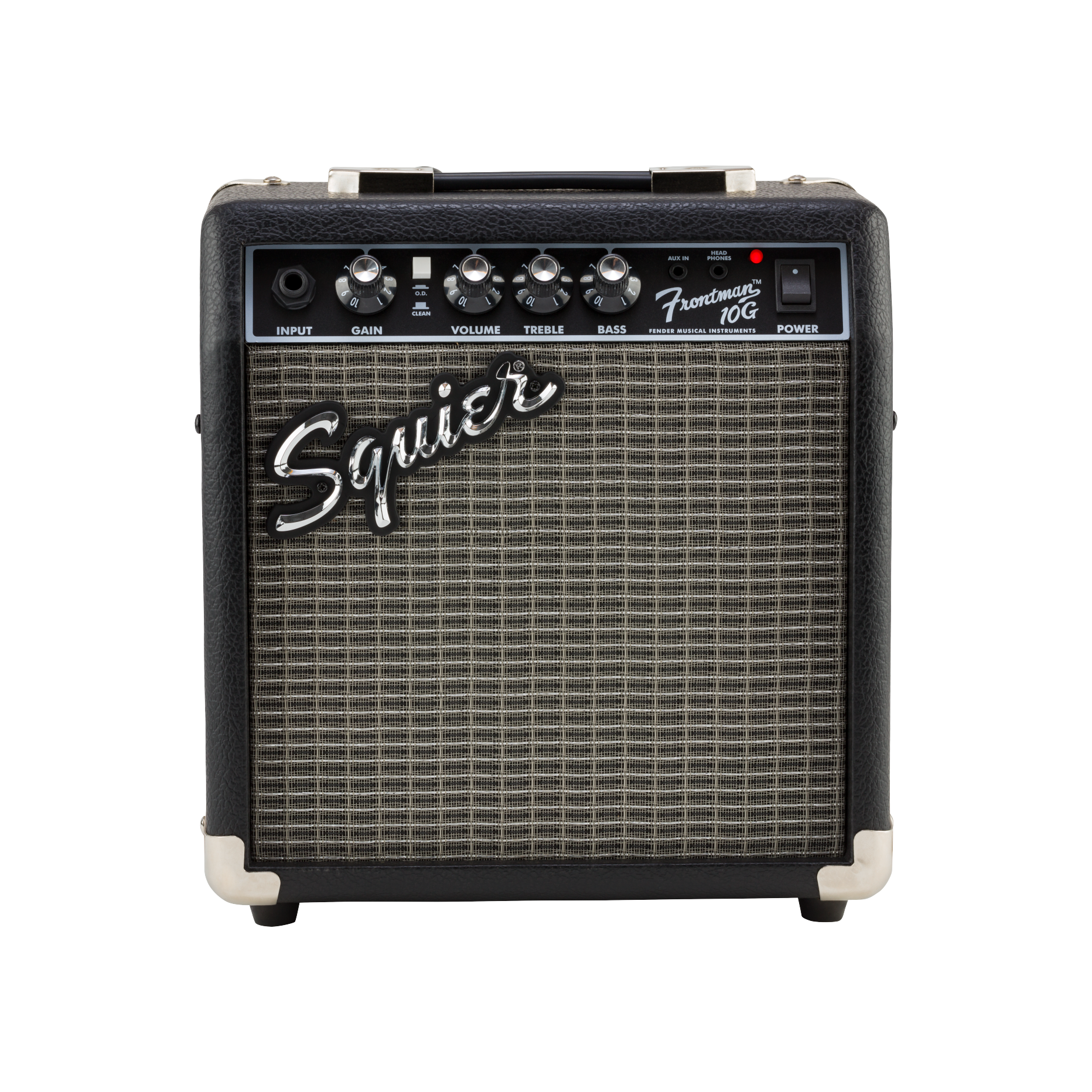 The Squier Sonic® Stratocaster® Pack is ready to launch any musical adventure into warp speed, offering new players a convenient collection of guitar essentials in one box. An icon of music history and a great choice for beginners, the Stratocaster is renowned for its stylish and comfortable contoured body and slim, easy-to-play neck. Three single-coil pickups produce inspiring and versatile tone perfect for any musical genre and a tremolo bridge invites expressive vibrato effects that are sure to spark creativity. The compact and portable Squier® Frontman® 10G amplifier features both clean and overdrive channels, two-band EQ for tone control, headphone jack for silent practice and an aux input for connecting a media device. Also included are a padded gig bag, instrument cable, strap and picks, as well as a free 3-month subscription to Fender Play® - the easiest way to learn guitar.