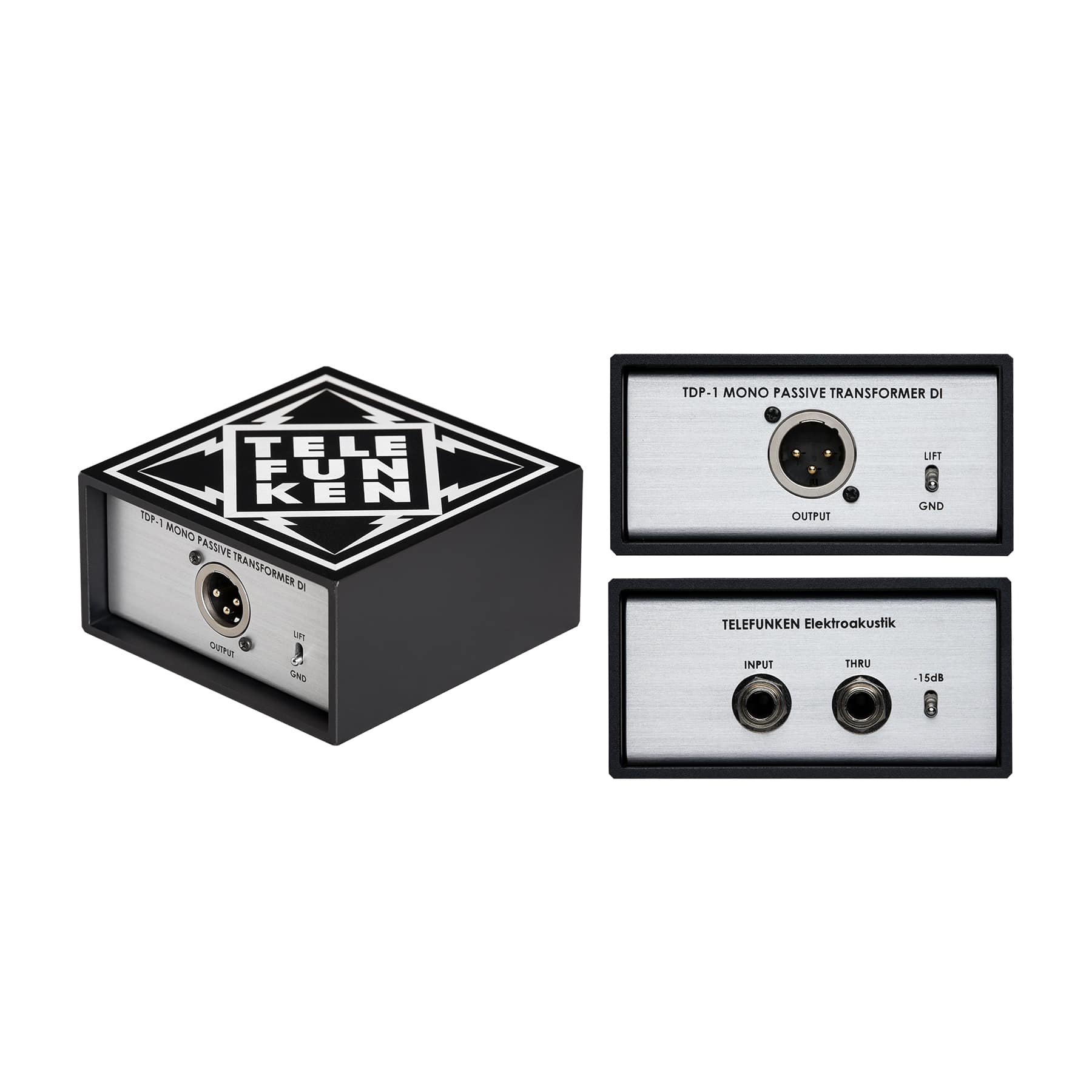 The single-channel TDP-1 passive direct box combine premium though-hole components, European-made transformers and rugged, road-ready construction to deliver rich, warm tone in any environment. Boasting an ultra-flat frequency response with extremely low distortion and self-noise, the TDP direct boxes excel at capturing everything from synthesizers and keyboards to acoustic-electric guitar and electric bass with a certain subtle and unique character. At the heart of all TELEFUNKEN Elektroakustik direct boxes are custom-wound output transformers made in England by OEP/Carnhill. Each channel features premium metal Amphenol connectors and recessed metal switches to engage the -15 dB pad and ground lift. These elements combined with premium passive components (including 1% tolerance metal film resistors, and WIMA and Nichicon capacitors) are all housed in a rugged aluminum chassis designed to withstand the wear and tear of the road. Like all TELEFUNKEN microphones, all TDP direct boxes are assembled and critically tested in Connecticut, USA.