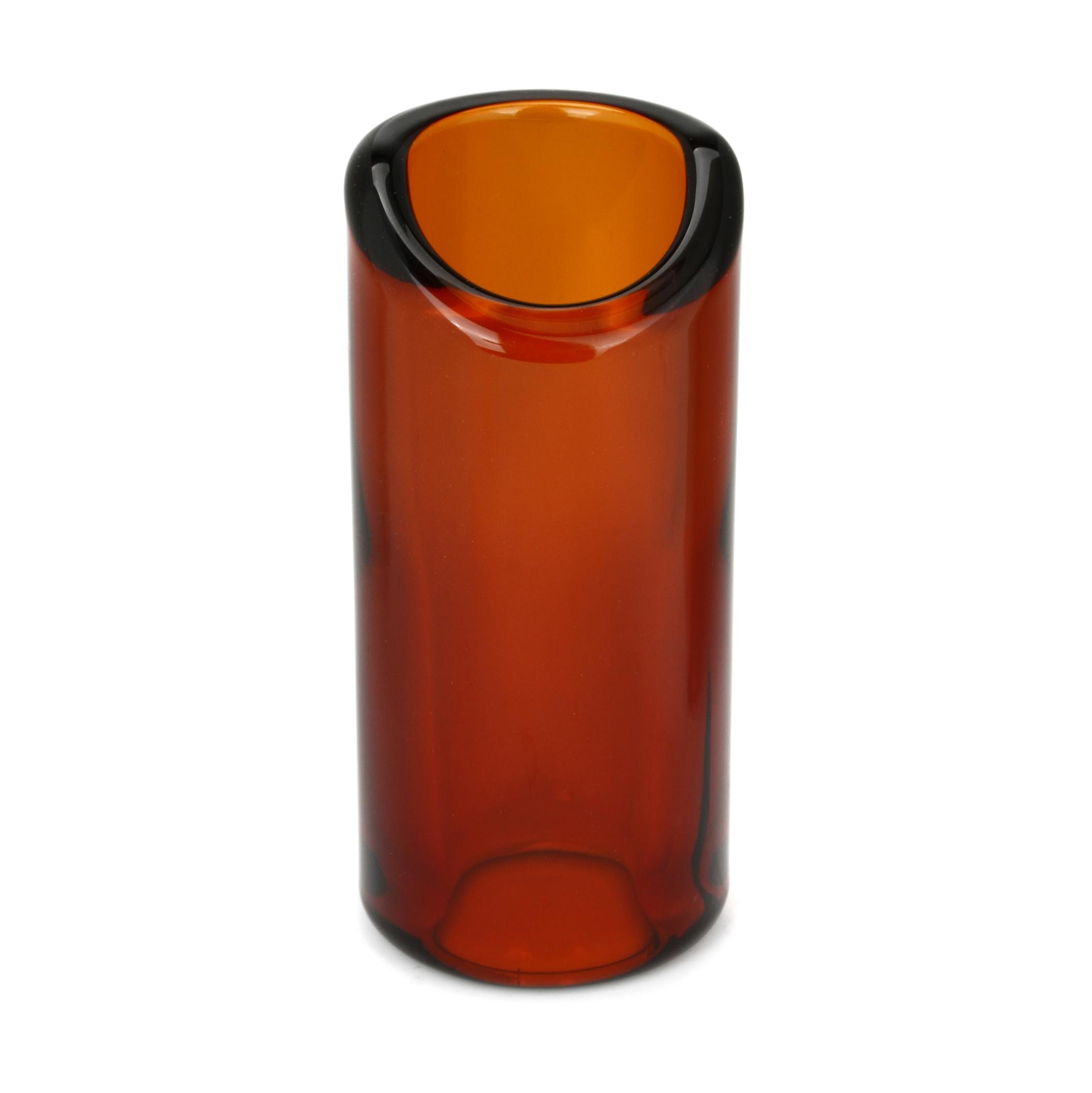 Moulded Glass Rock Slides are individually hand moulded by master lampworkers. These have all the same features as our brass Rock Slide® with the Knuckle Cut, Finger Rest and Tapered Interior. These fit almost exactly like their brass counterpart but are slightly longer. The main difference being that they are much lighter & faster so you can really cook with these on an electric guitar. Because of our unique tapered interior design they do have enough mass to light up your acoustic.