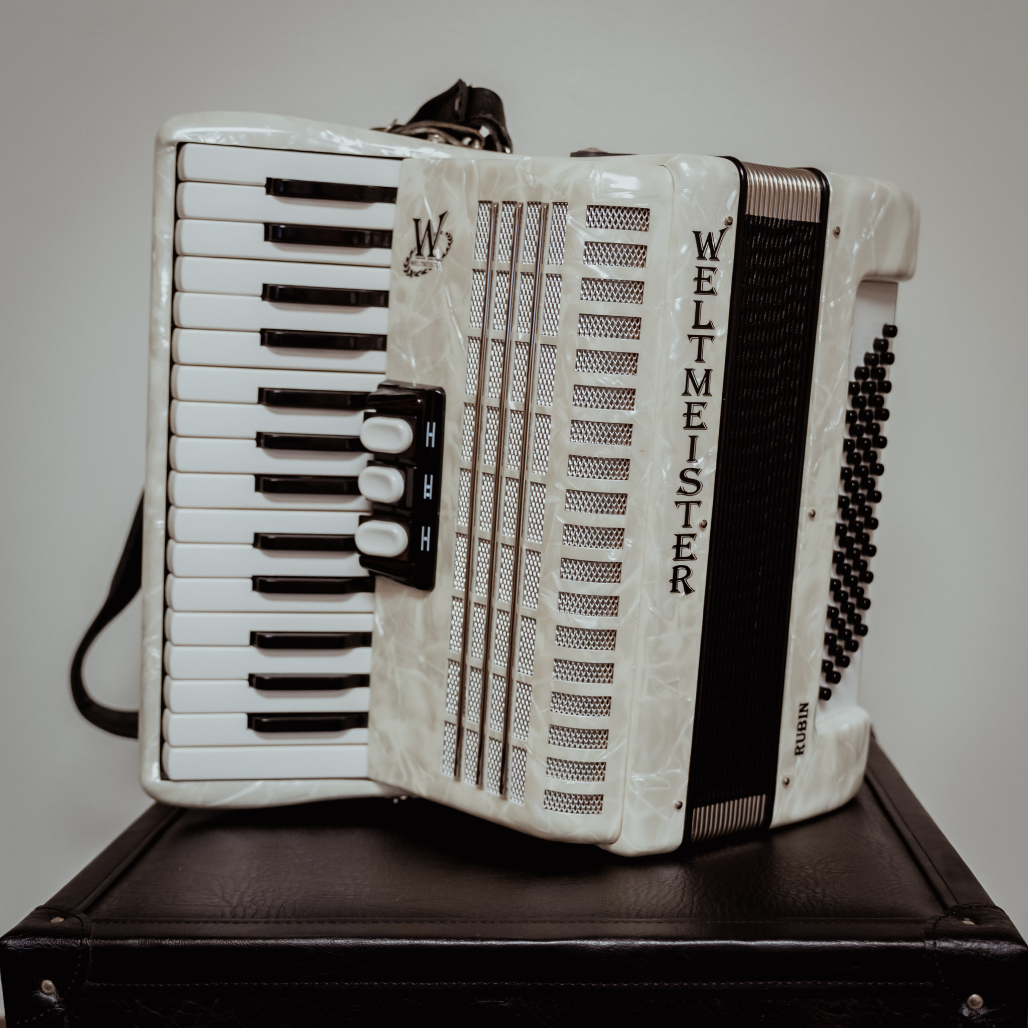 A Weltmeister Rubin 60 Bass Accordion in mint condition. This instrument was purchased new in the lates 90s and then not used. Stored properly. Has no leaks and sounds great!
